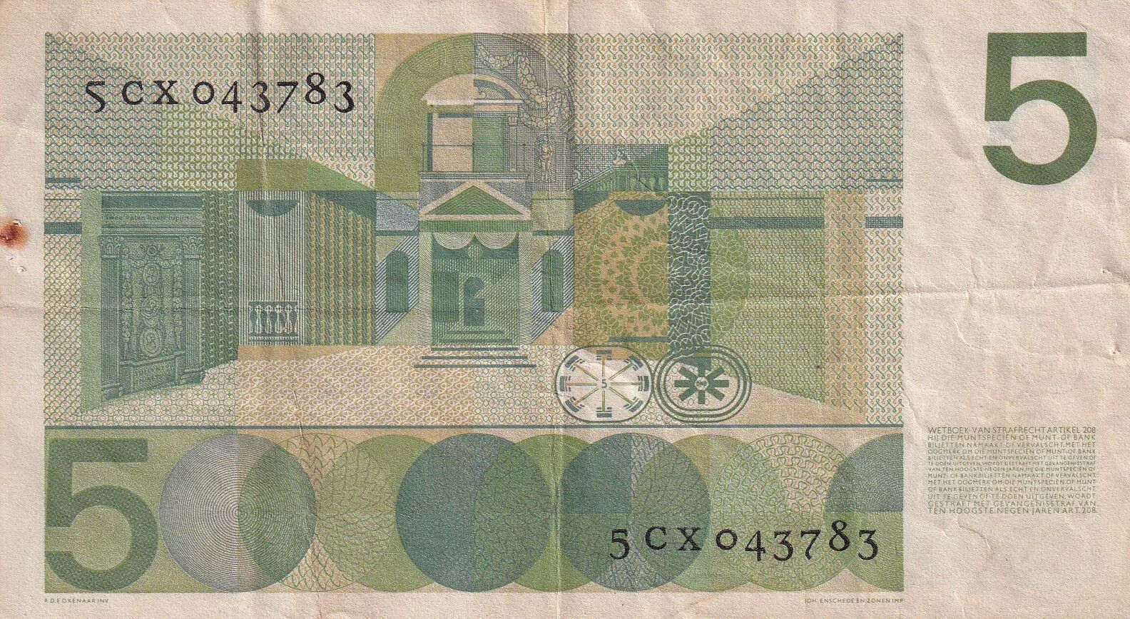 Banknote Netherlands 5 Gulden - J. Van den Vondel - 1966 - F - P.90a