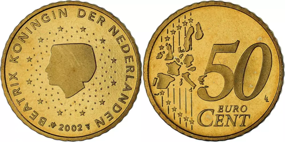 50 euro cents - Netherlands 2002Nordic Gold - 7.8g - Ø 24 25 mm - UNC