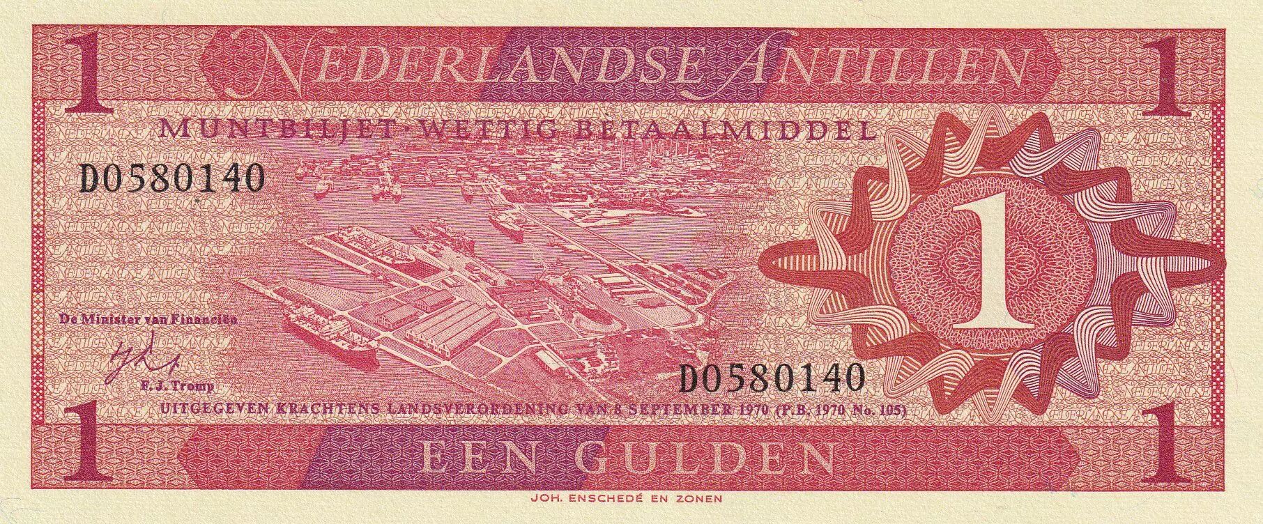Home > > Netherlands Antilles 1 Gulden - View of harbor - 1970 - UNC - P.20a