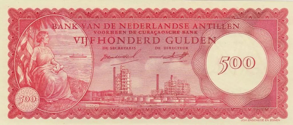 Banknote Netherlands Antilles 500 Gulden 1962 - Oil refinery of Curacao - PMG 66 EPQ