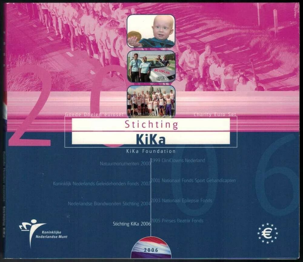 This numismatic set presents a complete series of euro coins from the Netherlands, minted in Brilliant Uncirculated (BU) quality for the year 2006. It includes the eight common face values, ranging from 1 cent to 2 euros.