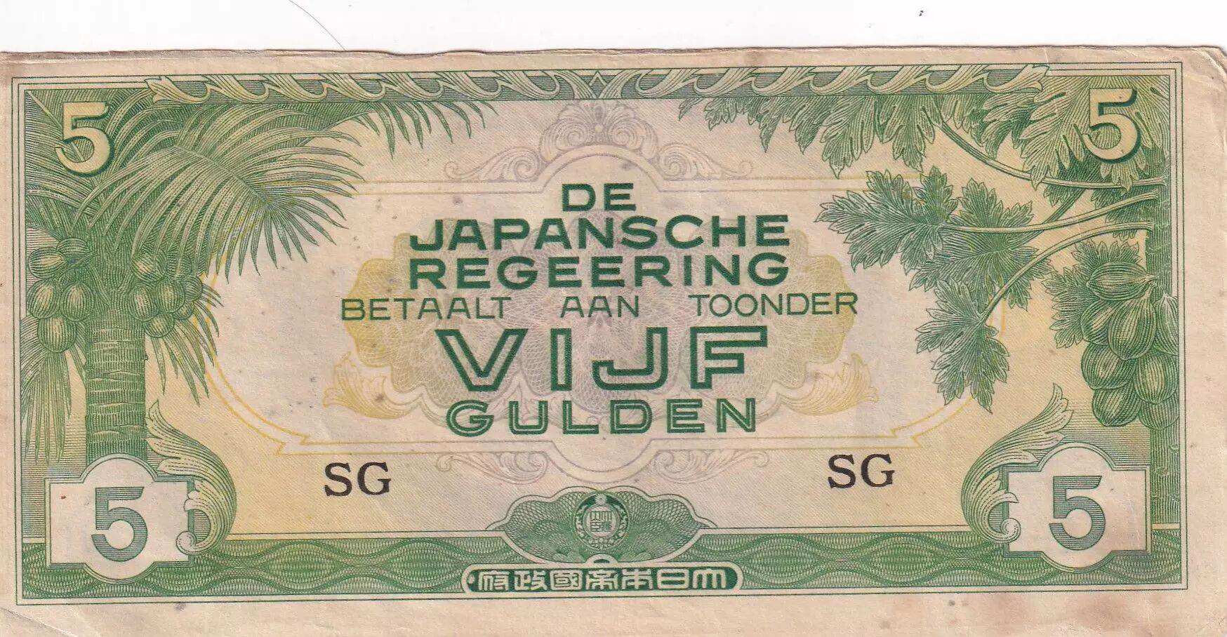 Home > > Netherlands Indies 5 Gulden - Japanese occupation - 1942 - Serial SG