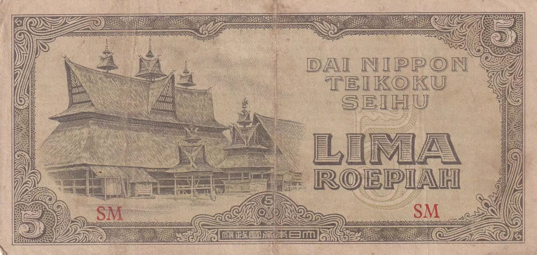 Banknote Netherlands Indies 5 Roepiah - Dai Nippon Teikoku Seihu (Imperial Japanese Government) - 1944 - Série SM