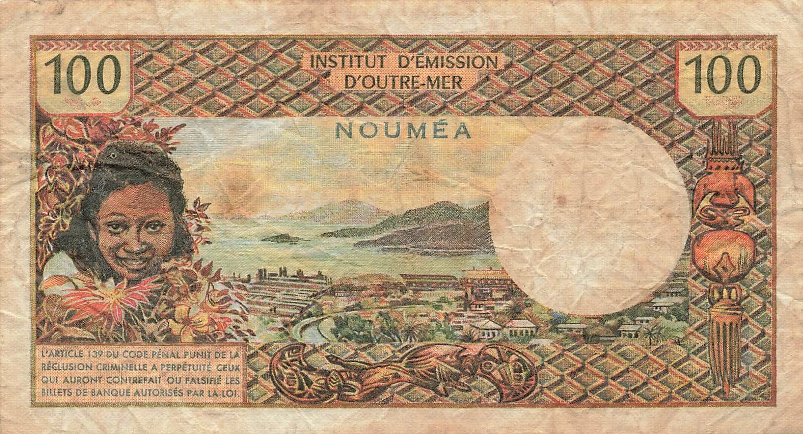Home > World Banknotes > Oceania Banknotes > New Caledonia > New Caledonia 100 Francs - ND (1971) - P.63b