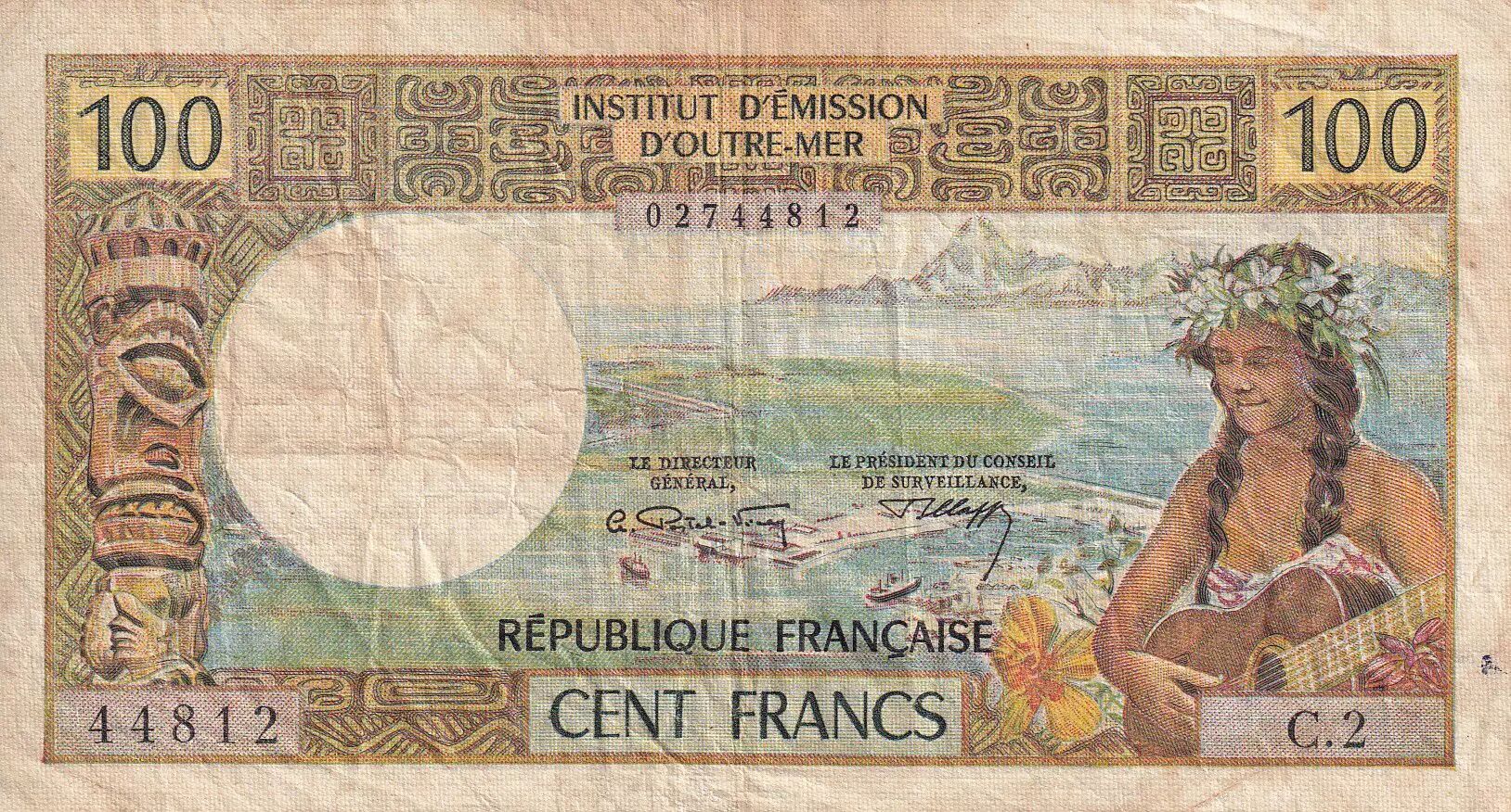 Home > > New Caledonia 100 Francs - Woman playing guitar - 1973 - Serial C..2 - P.63b