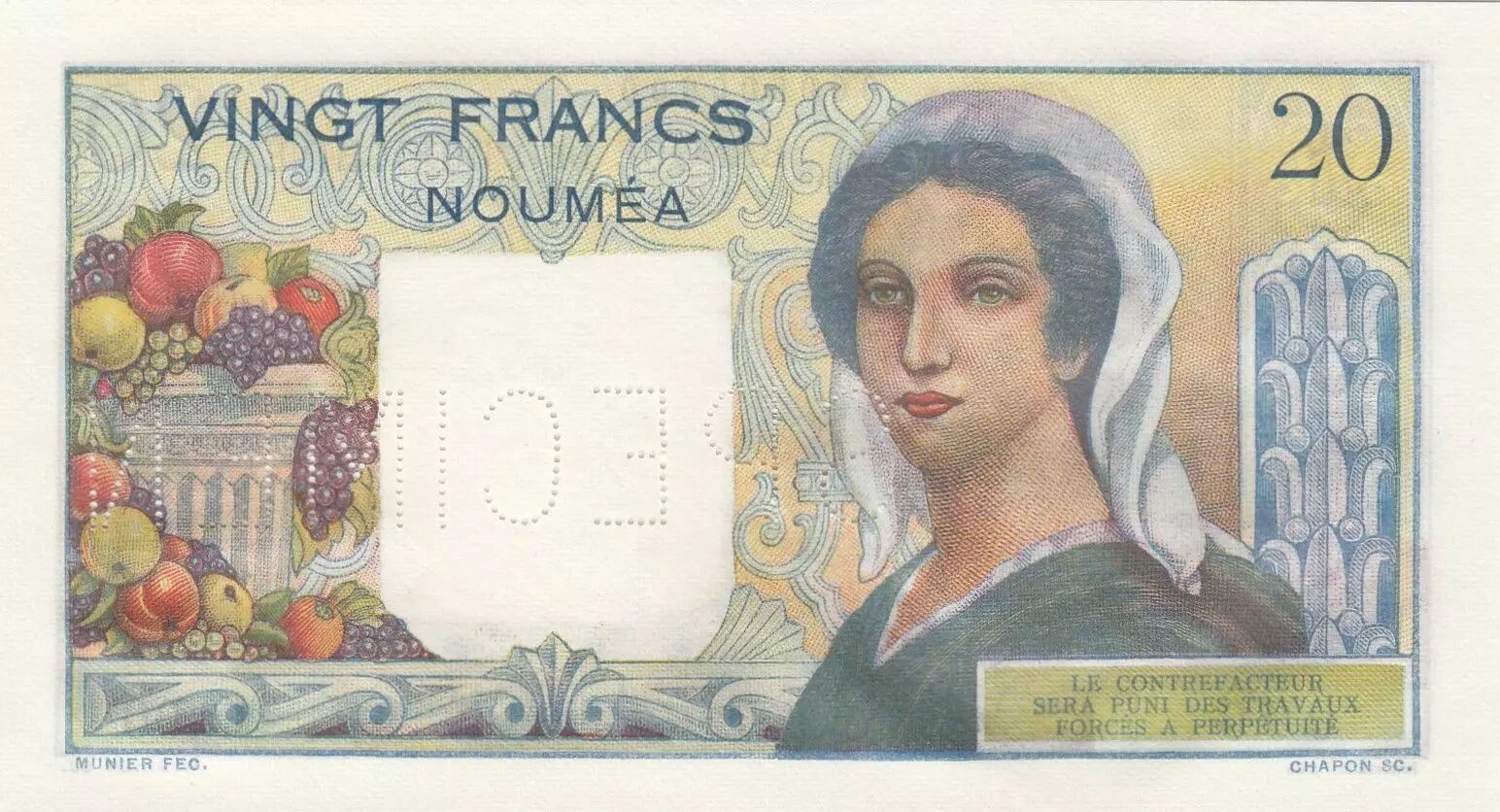 Home > > New Caledonia 20 Francs Young farmer - ND (1958) - Specimen - P.50