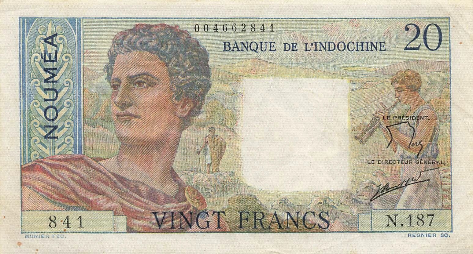 Home > World Banknotes > Oceania Banknotes > New Caledonia > New Caledonia 20 Francs - Young sheperd - ND (1963) - P.50c