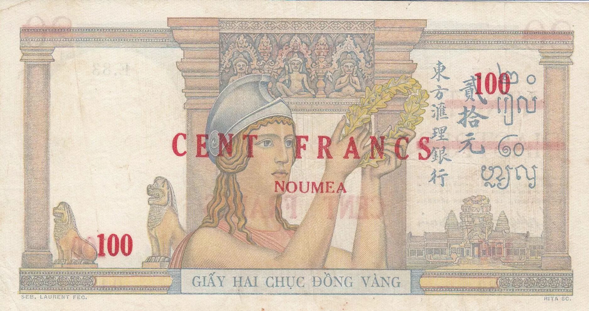 Banknote New Caledonia 20 Piastres - overprint 100 Francs - ND (1939) - Serial E.83