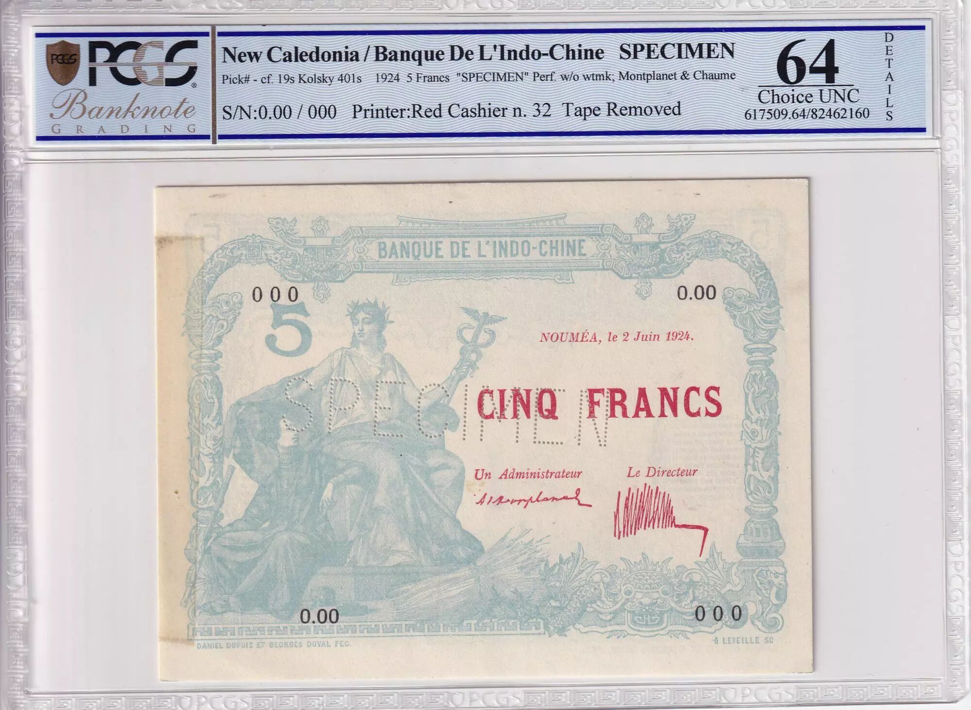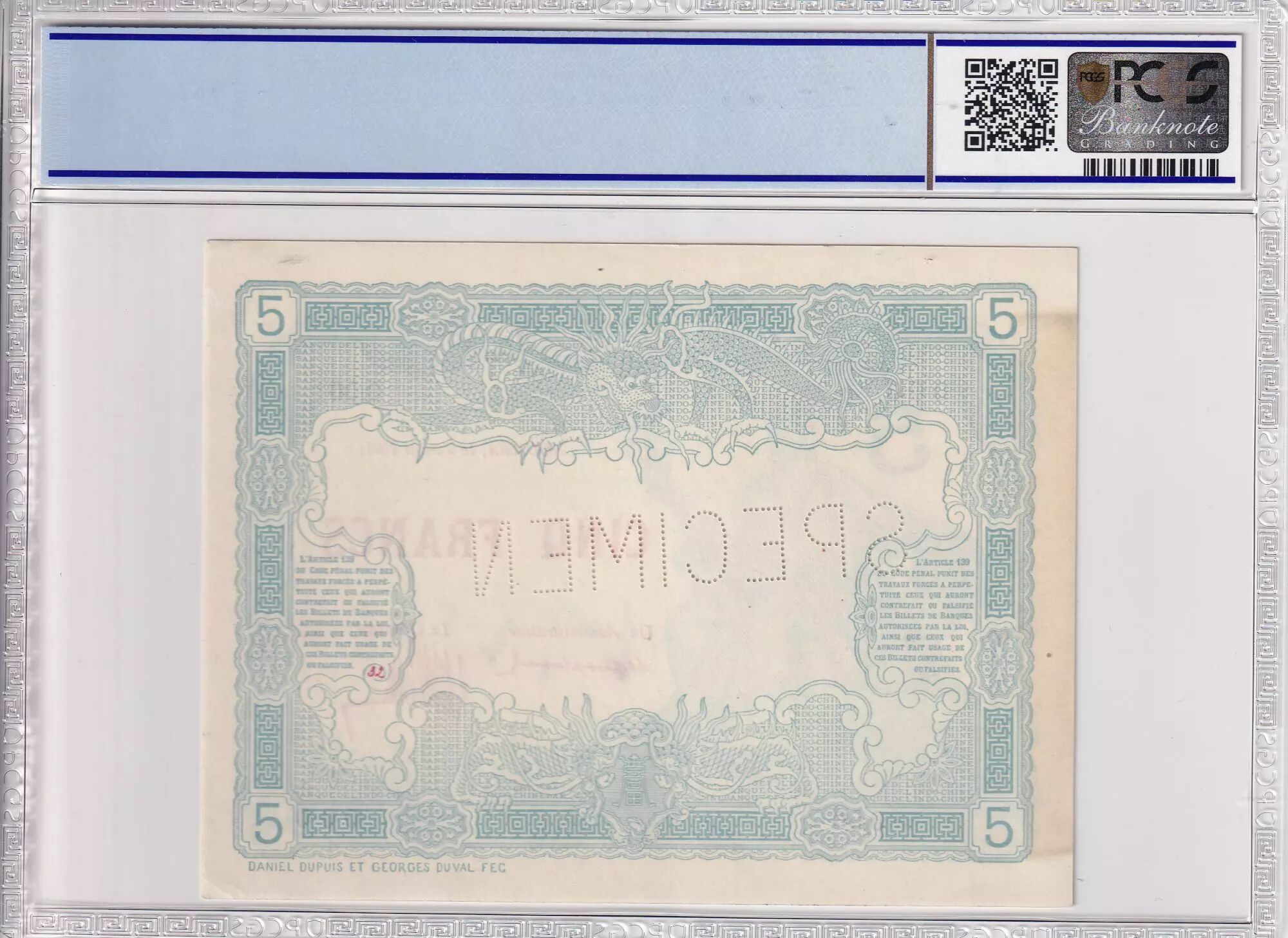 Specimen banknote by perforations.