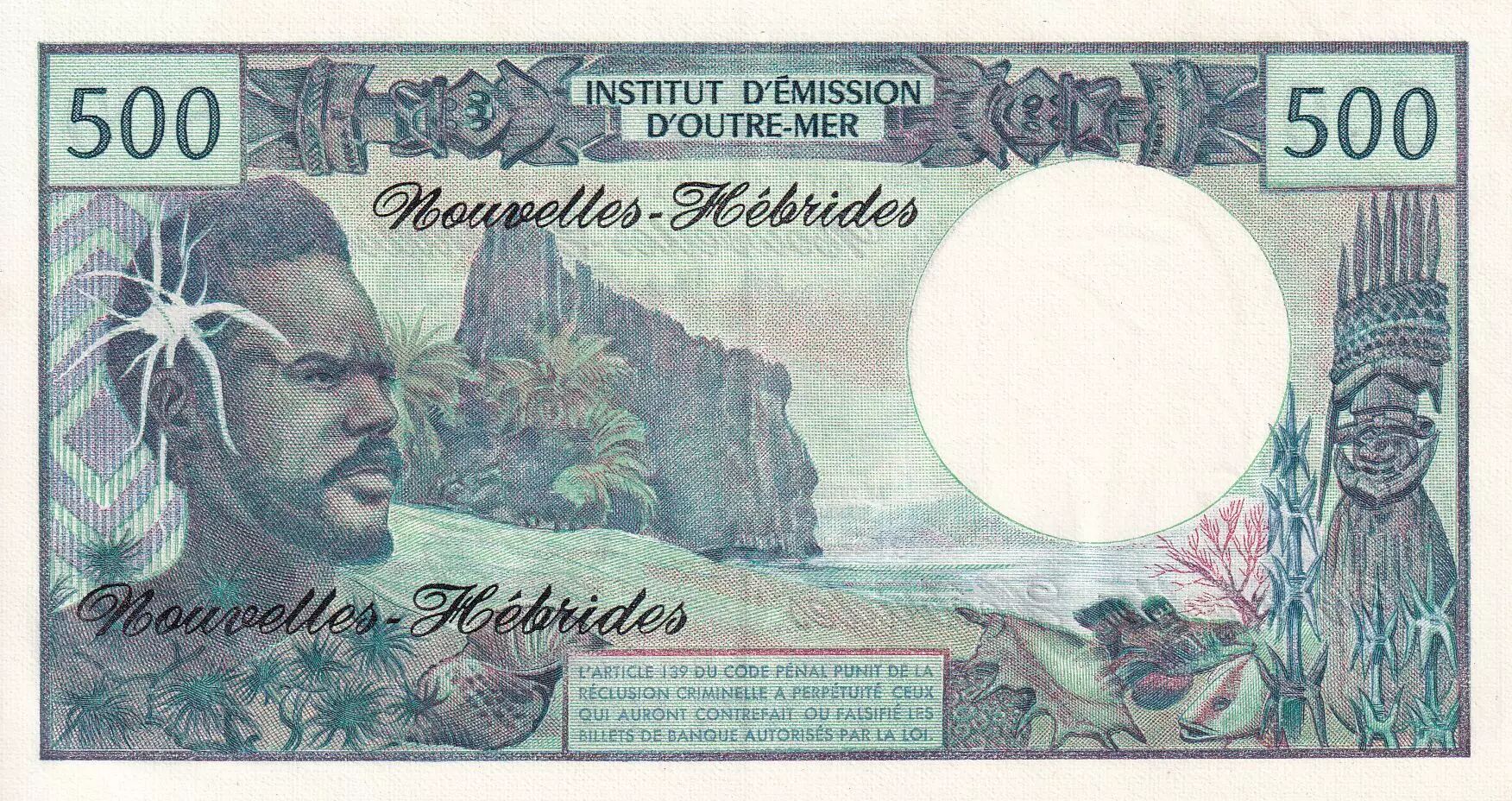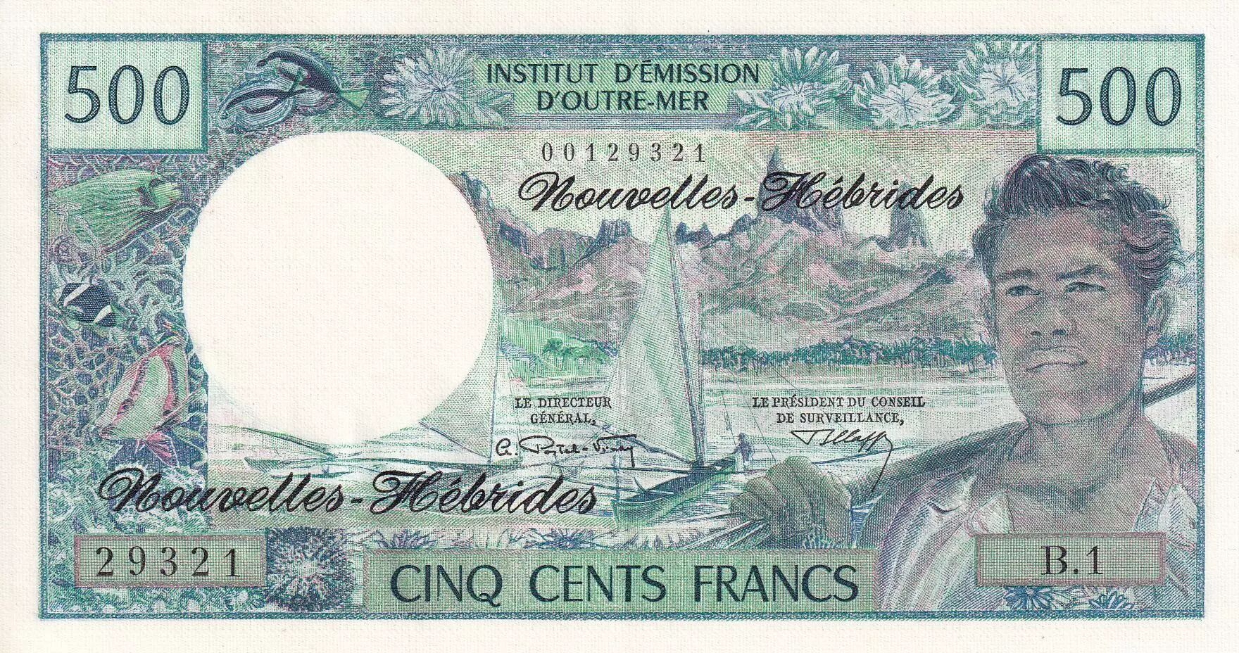 Home > World Banknotes > Oceania Banknotes > New Hebrides > New Hebrides 500 Francs Fisherman - Marquises Islands - 1970 - Serial B.1 - AUNC - P.19a