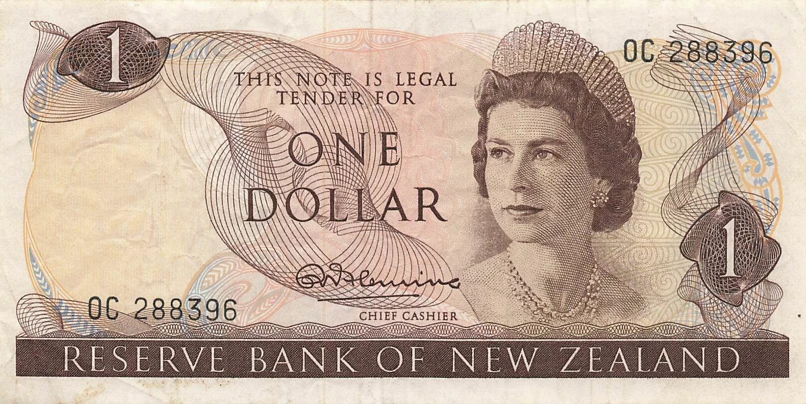 Home > World Banknotes > Oceania Banknotes > New Zealand > New Zealand 1 Dollar - Elizabeth II - ND (1967-68) - P.163a