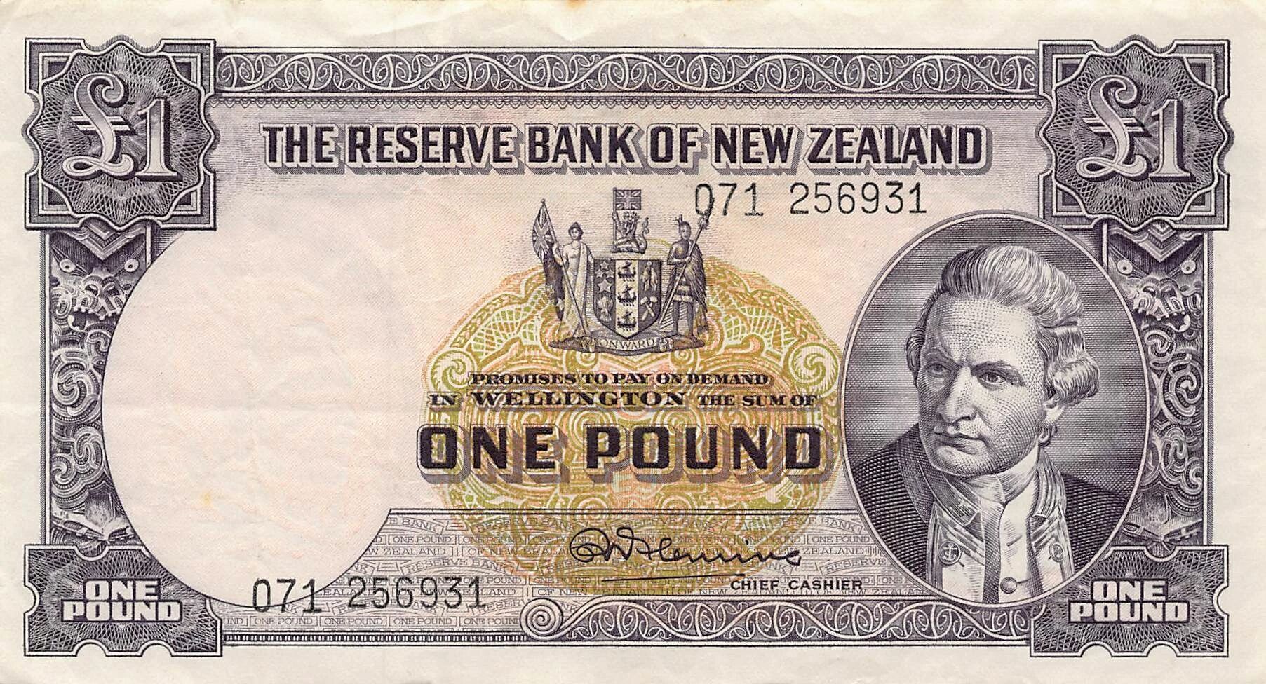 Home > World Banknotes > Oceania Banknotes > New Zealand > New Zealand 1 Pound - James Cook - ND (1956-60) - P.159c