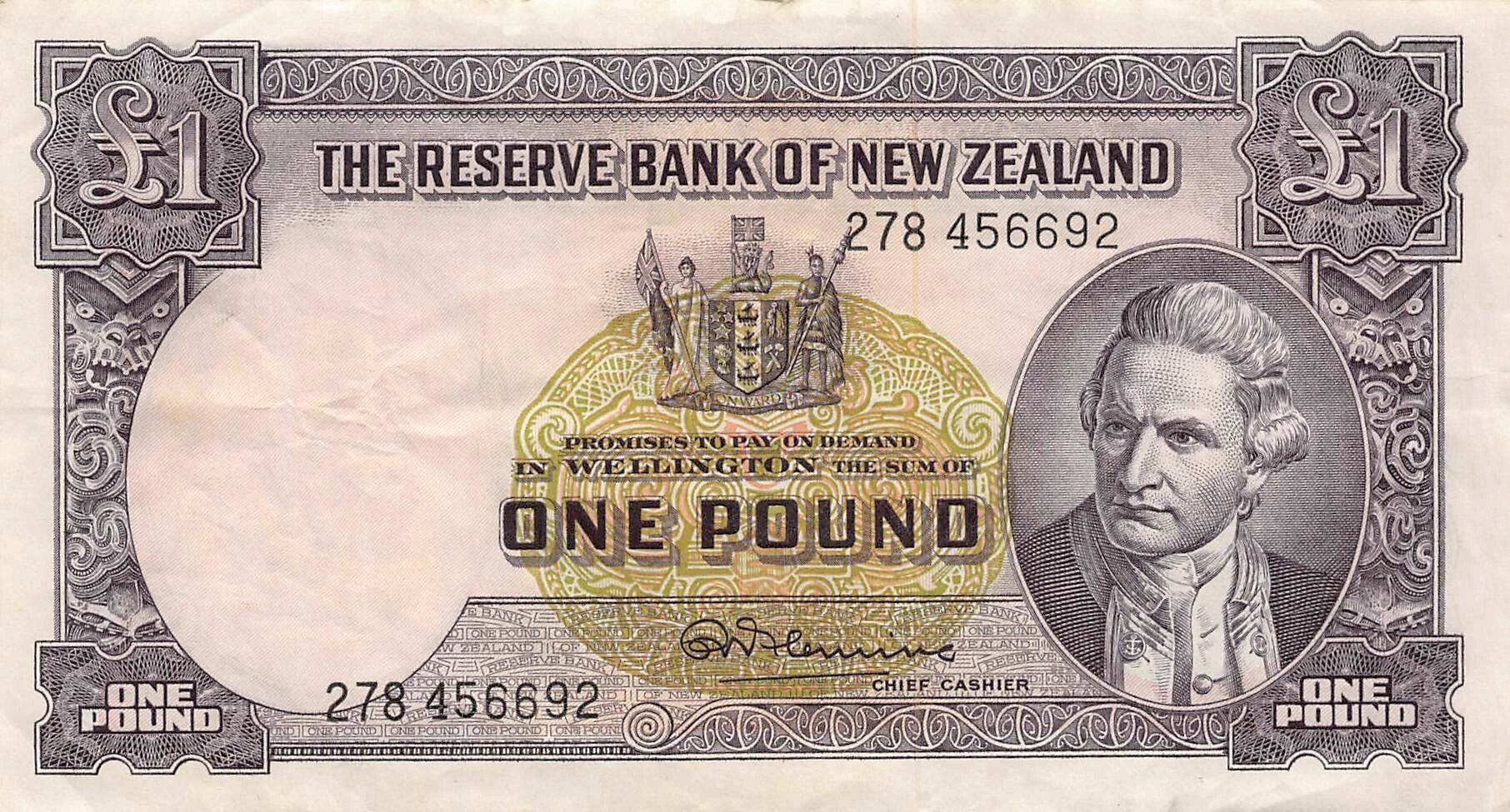 Home > World Banknotes > Oceania Banknotes > New Zealand > New Zealand 1 Pound - James Cook - ND (1960-67) - P.159d
