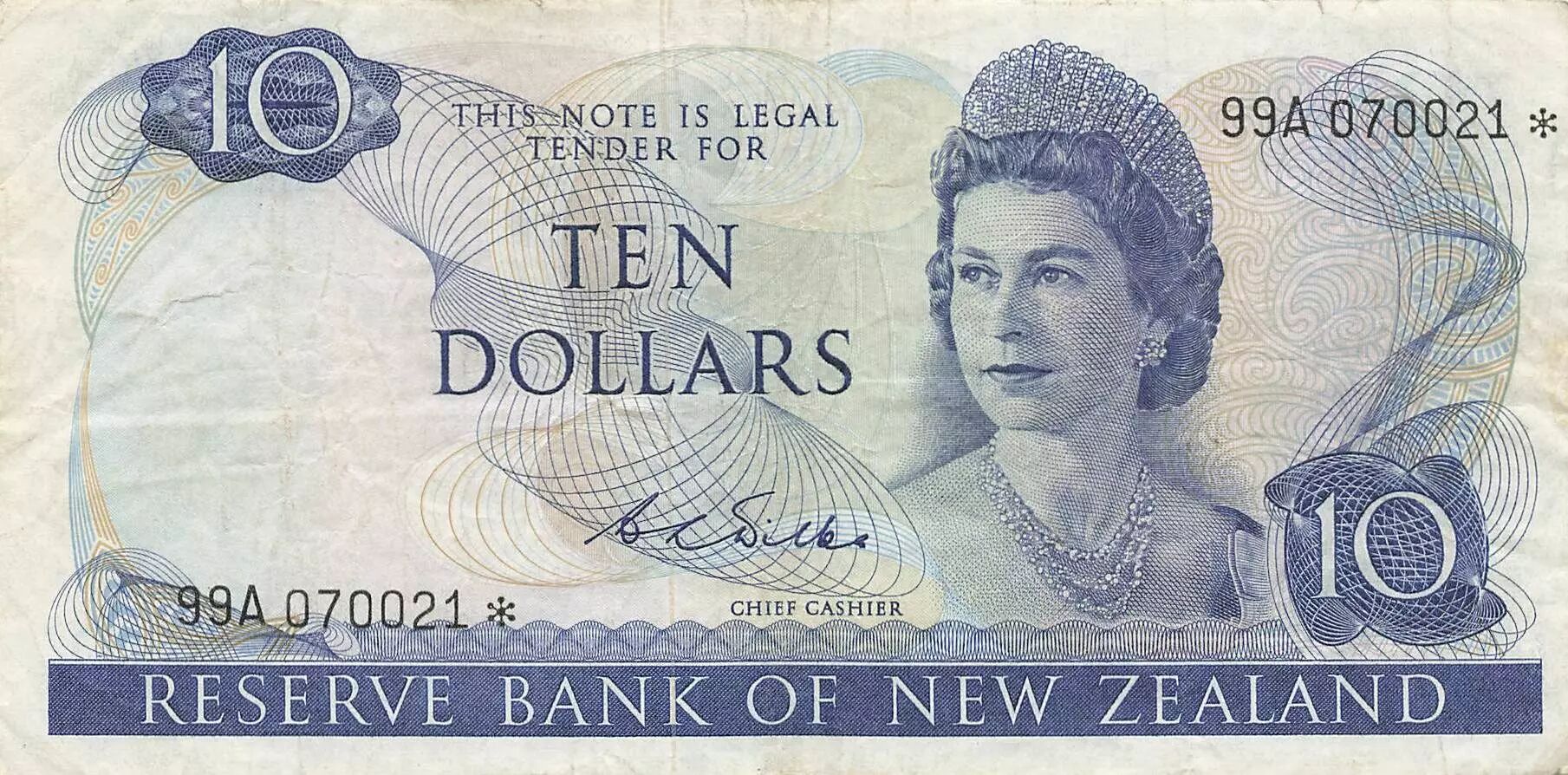 Home > World Banknotes > Oceania Banknotes > New Zealand > New Zealand 10 Dollars - Elizabeth II - ND (1977-1981) - Replacement - P.166d