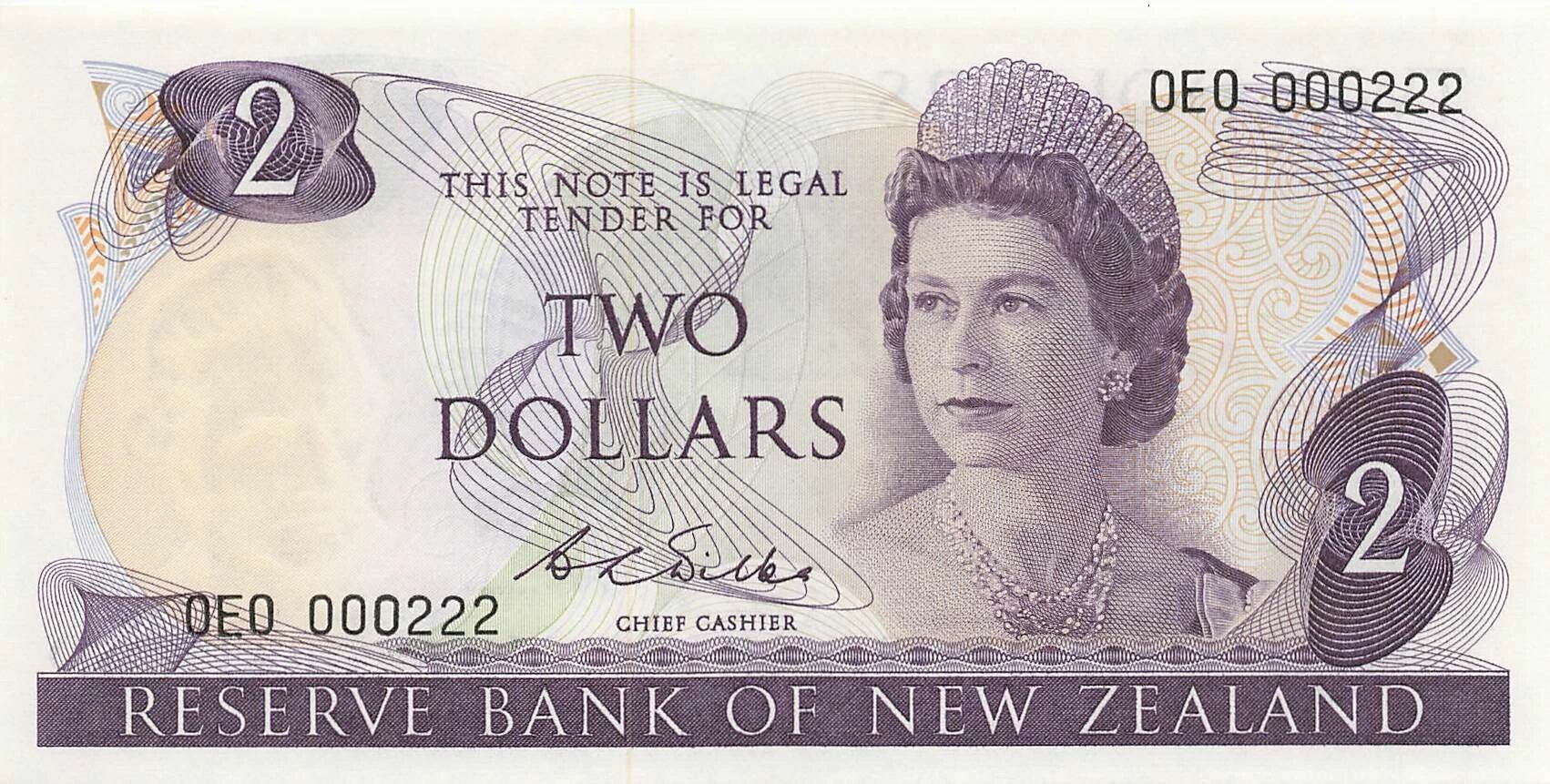 Home > World Banknotes > Oceania Banknotes > New Zealand > New Zealand 2 Dollars - Elizabeth II - ND (1968-75) - P.164b