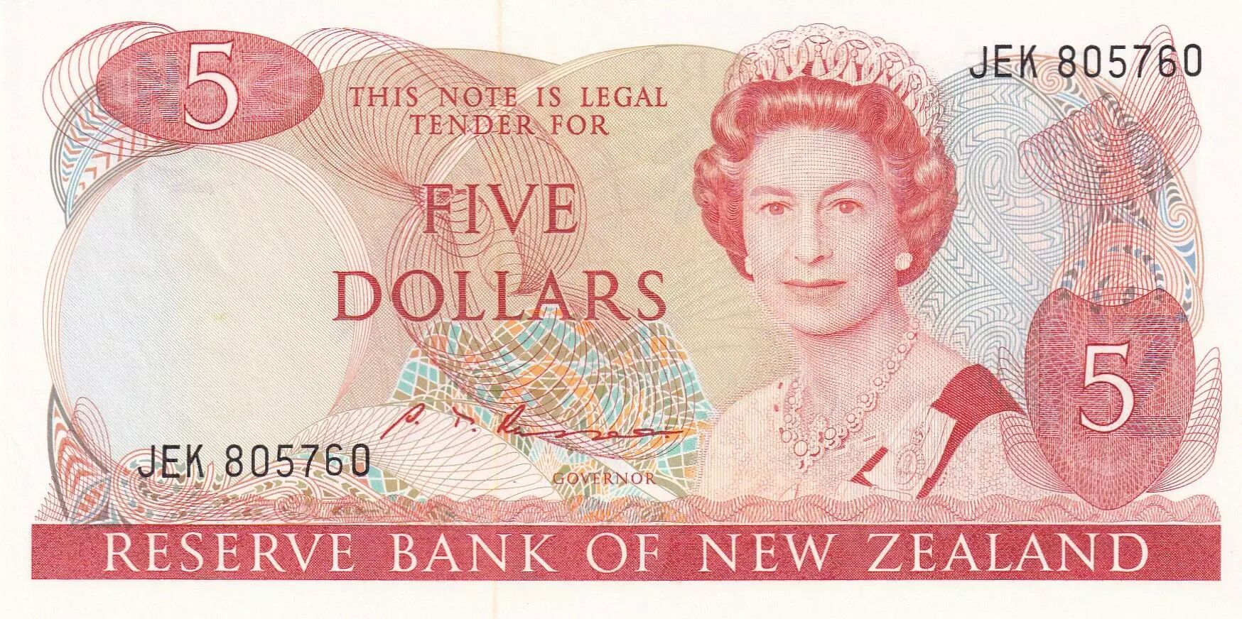 Home > > New Zealand 5 Dollars - Elizabeth II - Tui - ND (1985-1989)