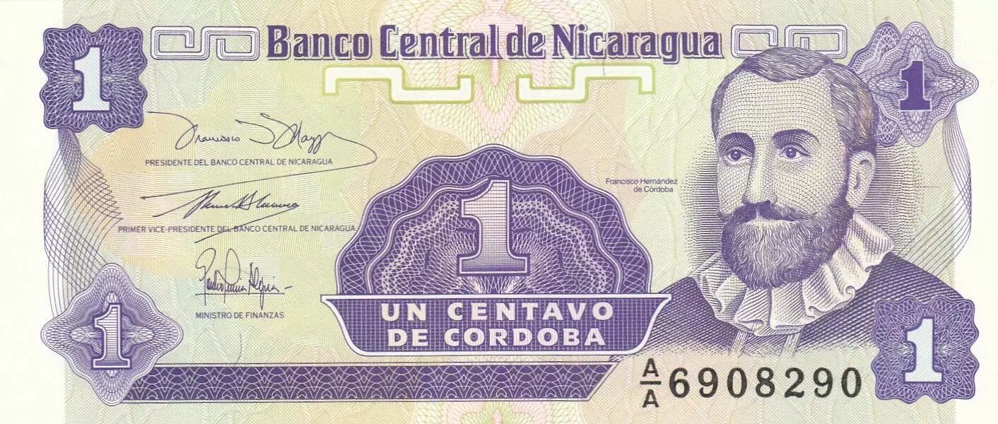Home > > Nicaragua 1 Centavo - Fransisco de Cordoba - ND (1991) - Serial AA