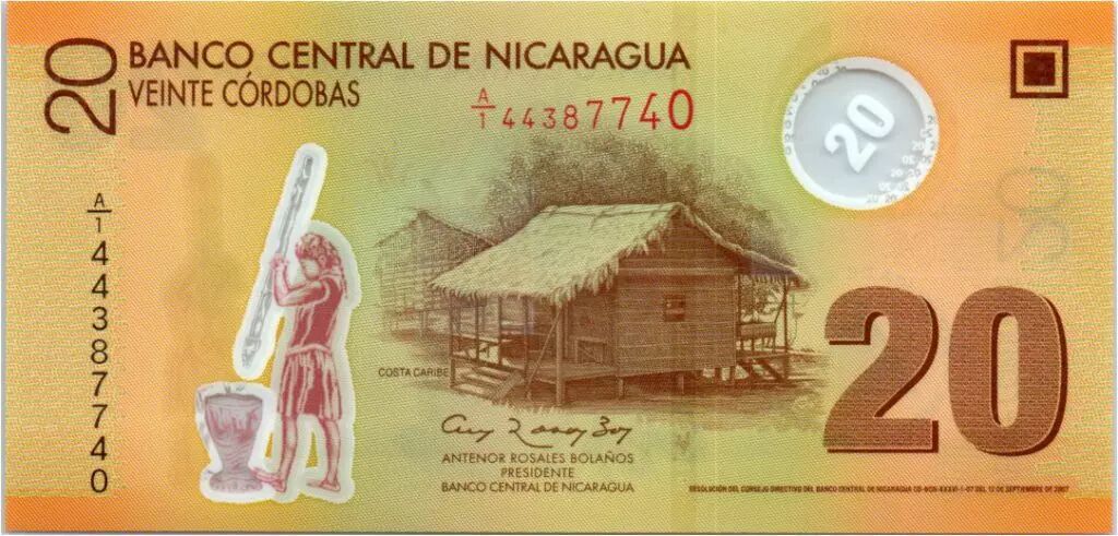 Billet Nicaragua 20 Cordobas, Maison, Costa Cabrie - Palo de Mayo - Polymer - 2007 (2012)