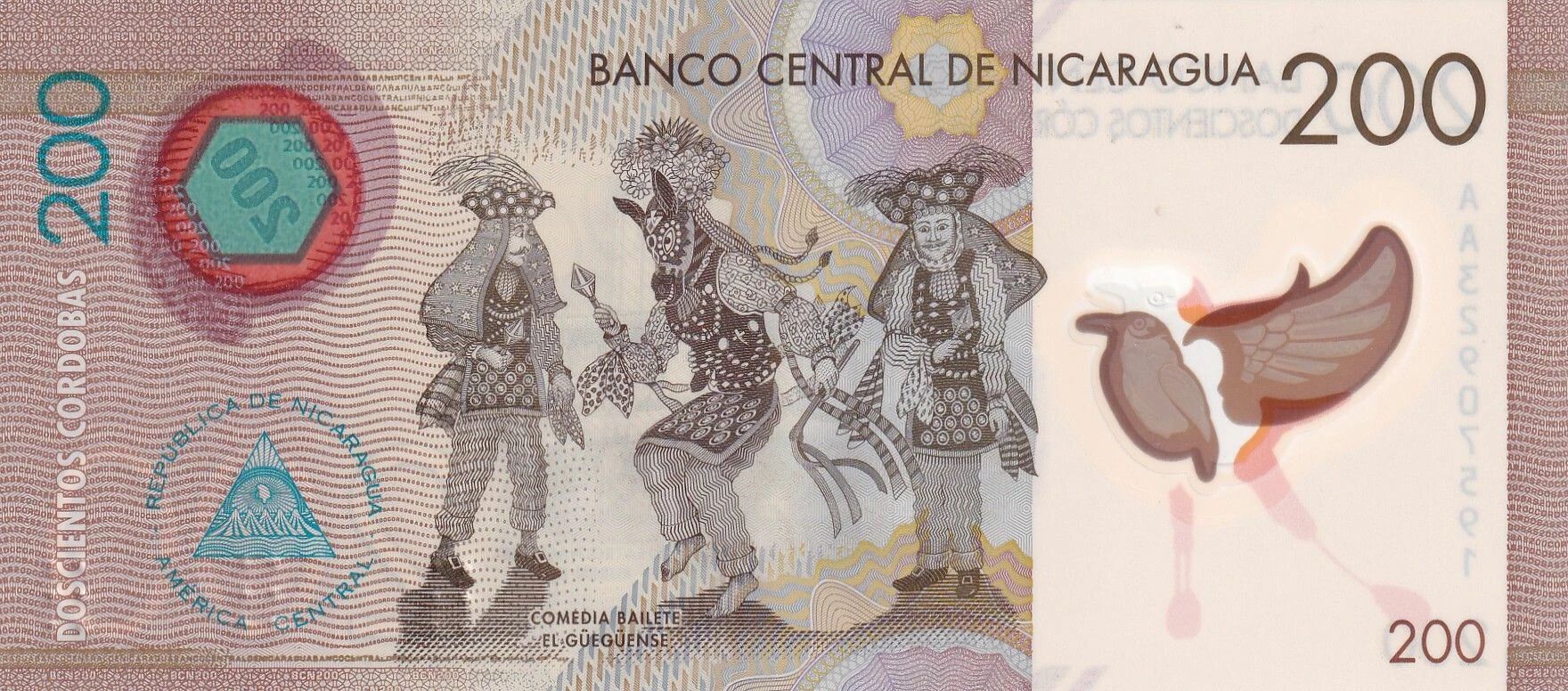 Ce billet de banque est émis par le Nicaragua en 2022. Il possède une valeur nominale de 200 cordobas et appartient à la série AA.