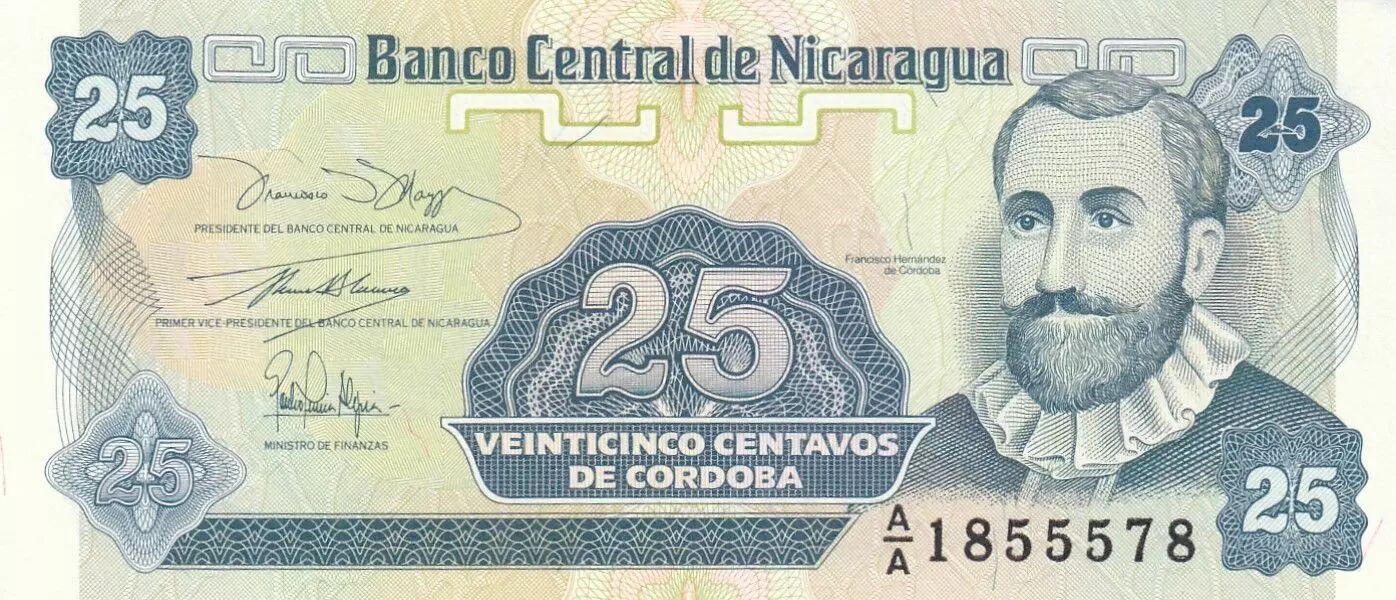 Home > > Nicaragua 25 Centavos - Fransisco de Cordoba - ND (1991) - Serial AA