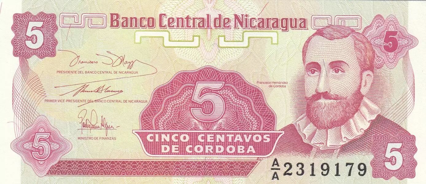 Home > > Nicaragua 5 Centavos - Fransisco de Cordoba - ND (1991) - Serial AA
