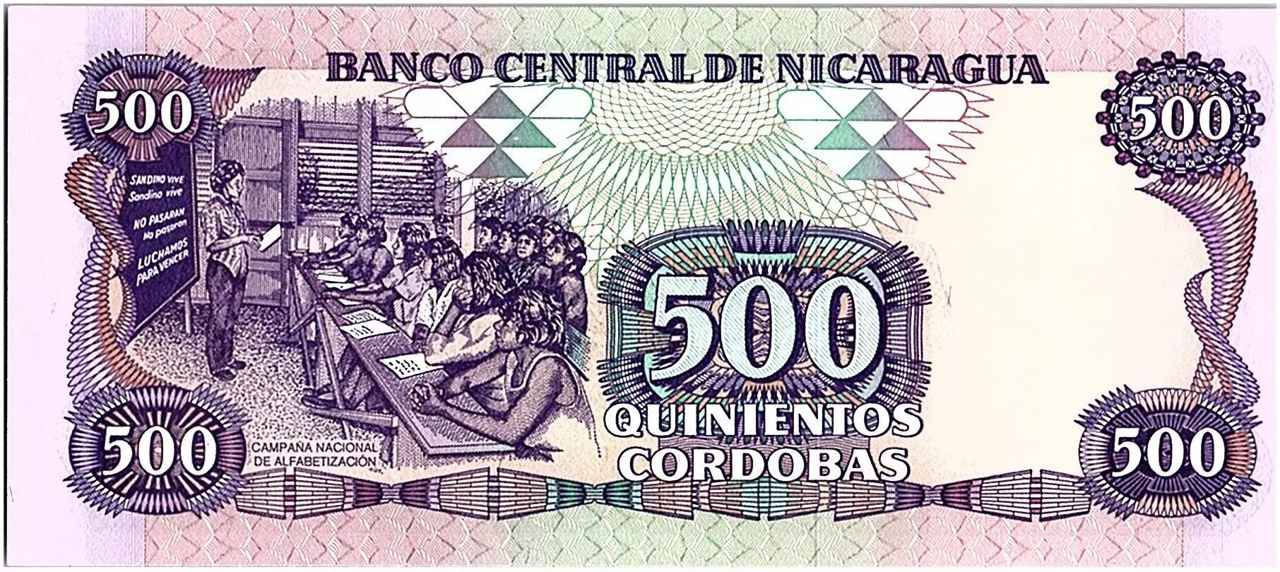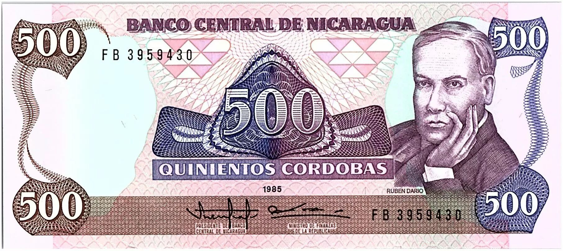 Billet Nicaragua 500 Cordobas, Ruben Dario - 1988