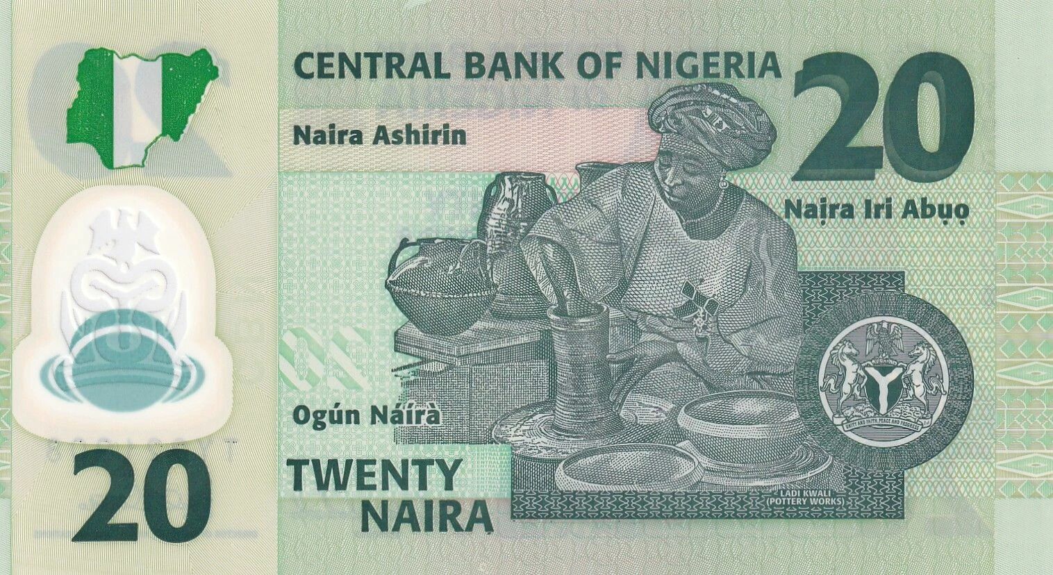 Le revers du billet met en valeur Ladi Kwali, une potière nigériane de renom. Son ?uvre a contribué à la reconnaissance de l'artisanat nigérian sur la scène internationale. La représentation de Ladi Kwali sur le billet célèbre son héritage artistique et son influence culturelle.