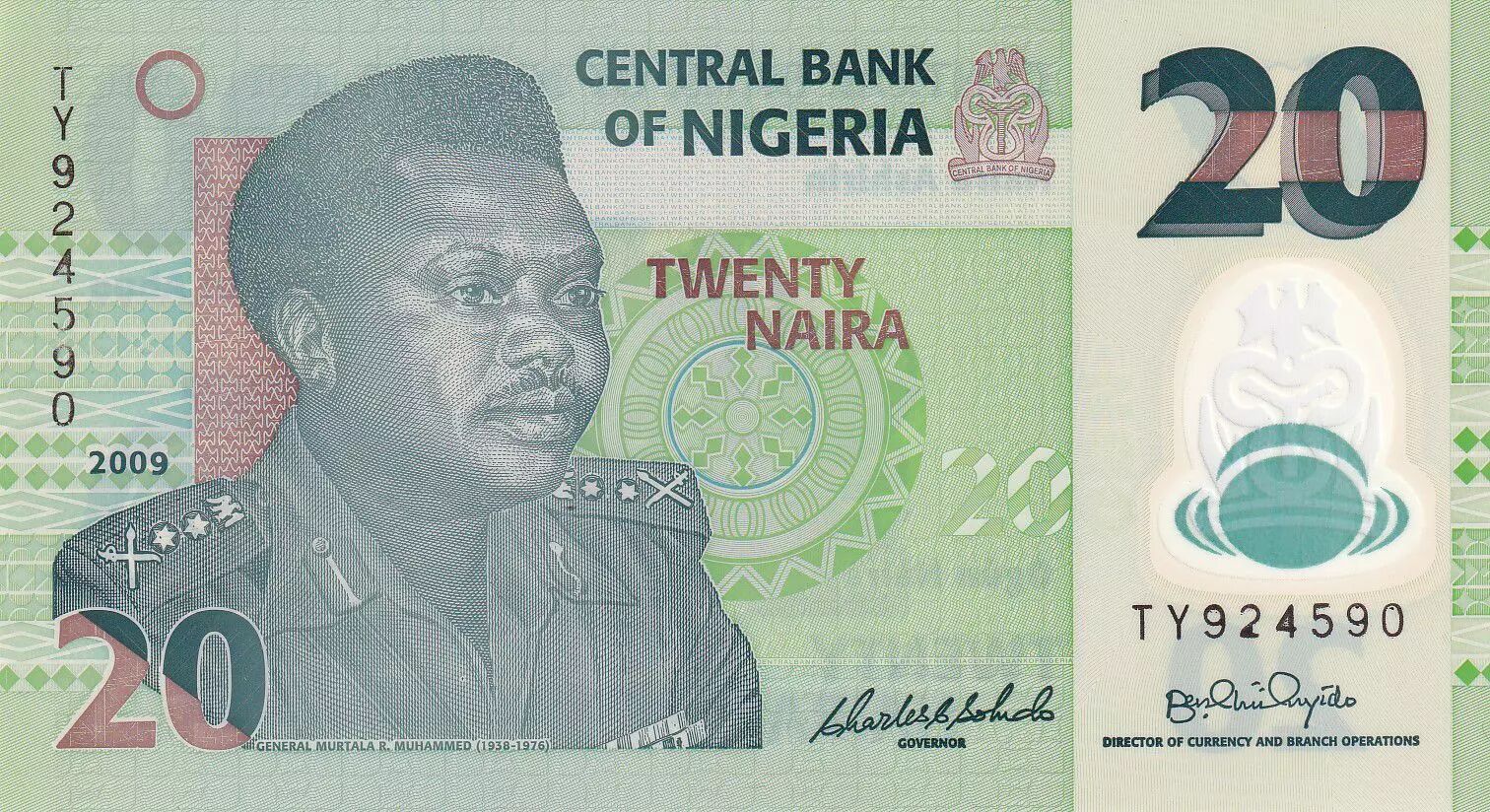 Accueil > Archivage > Nigeria 20 Naira - Général Muhammad - Potier - Polymère - 2009 - Série TY - P.34e