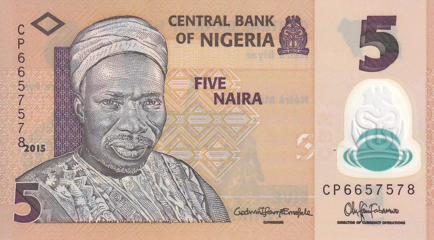 Billet Nigeria 5 Naira - Alhaji Sir Abubakar Tafawa Balewa - Polymère - 2015 - Série CP - P38f