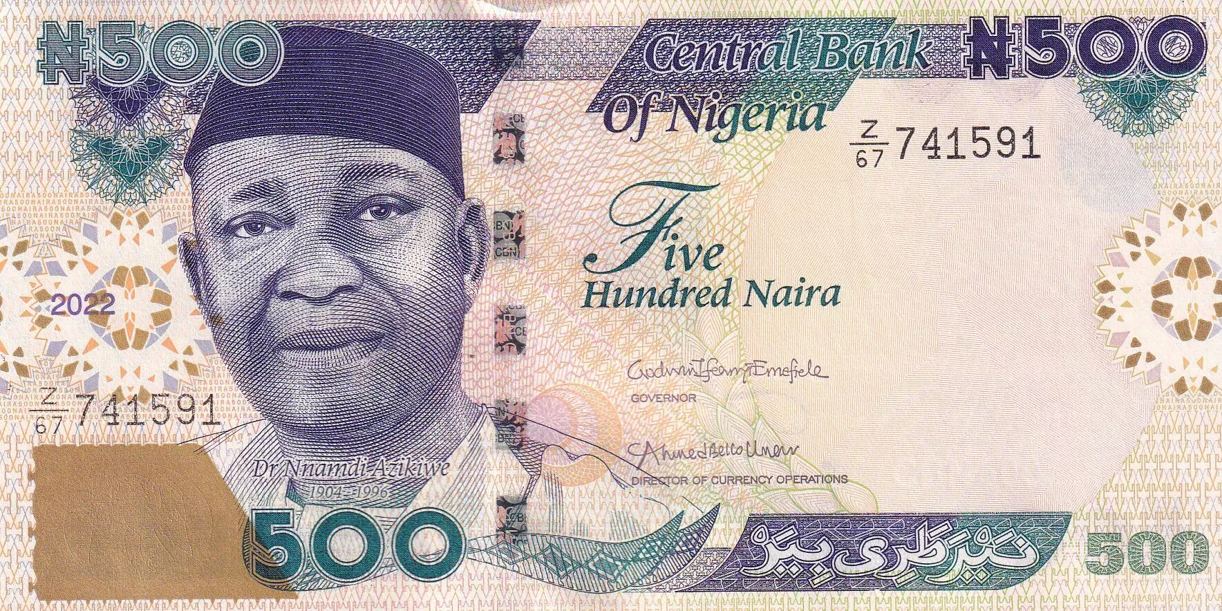 Billet Nigeria 500 Naira - Dr N. Azikiwe - Plateforme pétrolière - 2022 - Série Z.67 - P.NEW