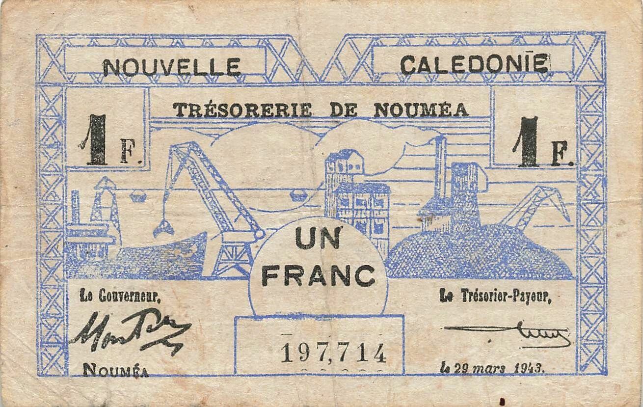 Billet Nle Calédonie 1 Franc - 29-03-1943 - Nouméa - P.55b