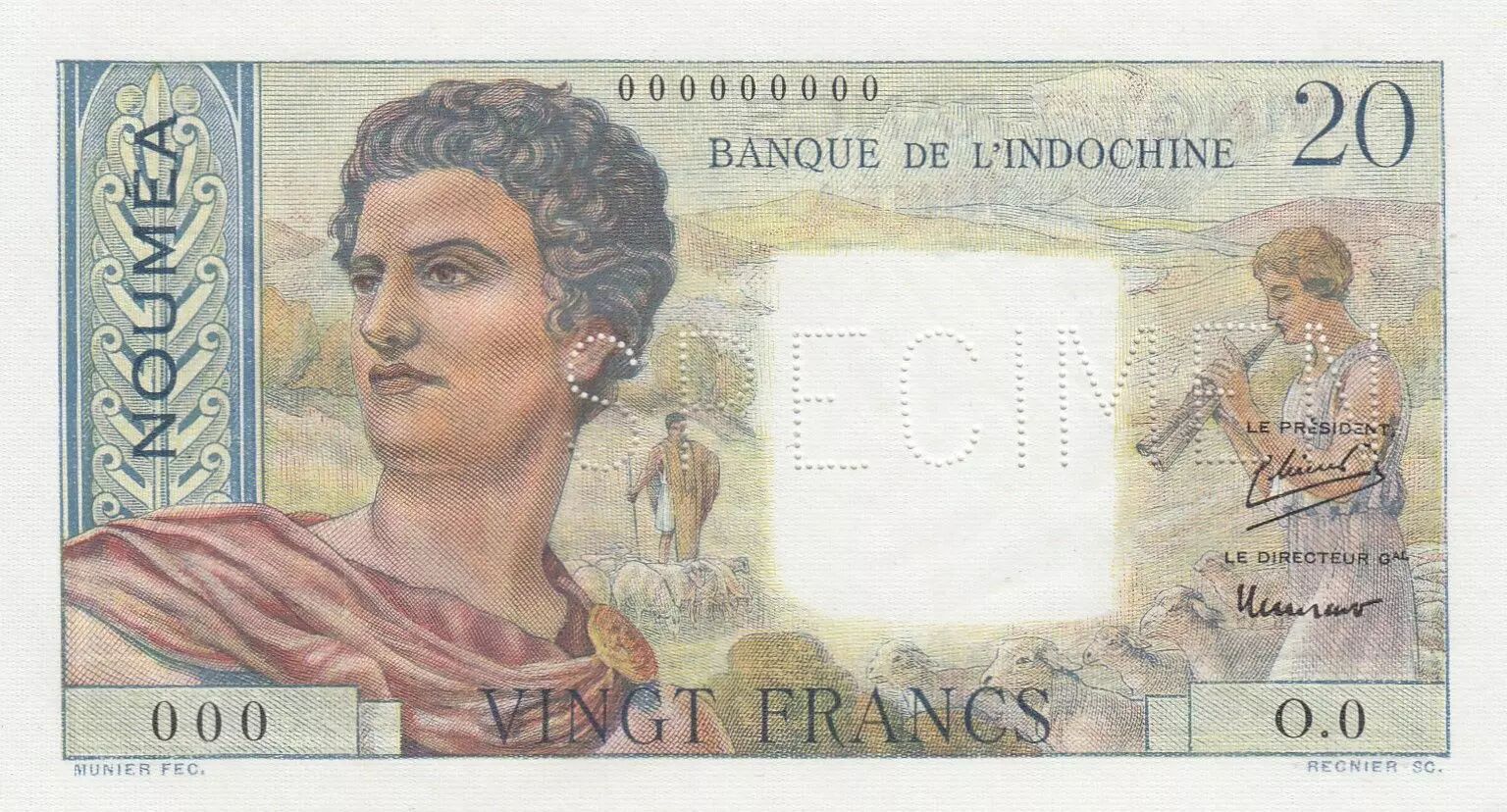 Accueil > Archivage > Nle Calédonie 20 Francs Jeune Berger - ND (1954) - Spécimen