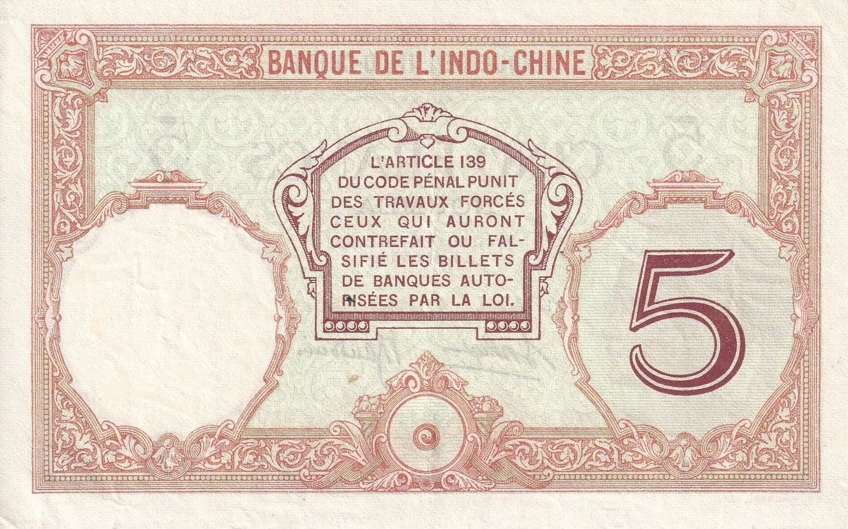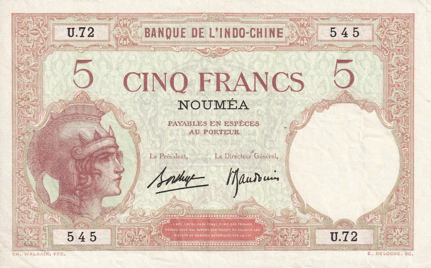 Accueil > Archivage > Nle Calédonie 5 Francs - Nouméa - 1926 - Série U.72 - SUP - P.36b