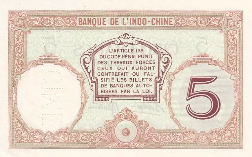 Accueil > Archivage > Nle Calédonie 5 Francs Walhain - Spécimen - ND (1937)