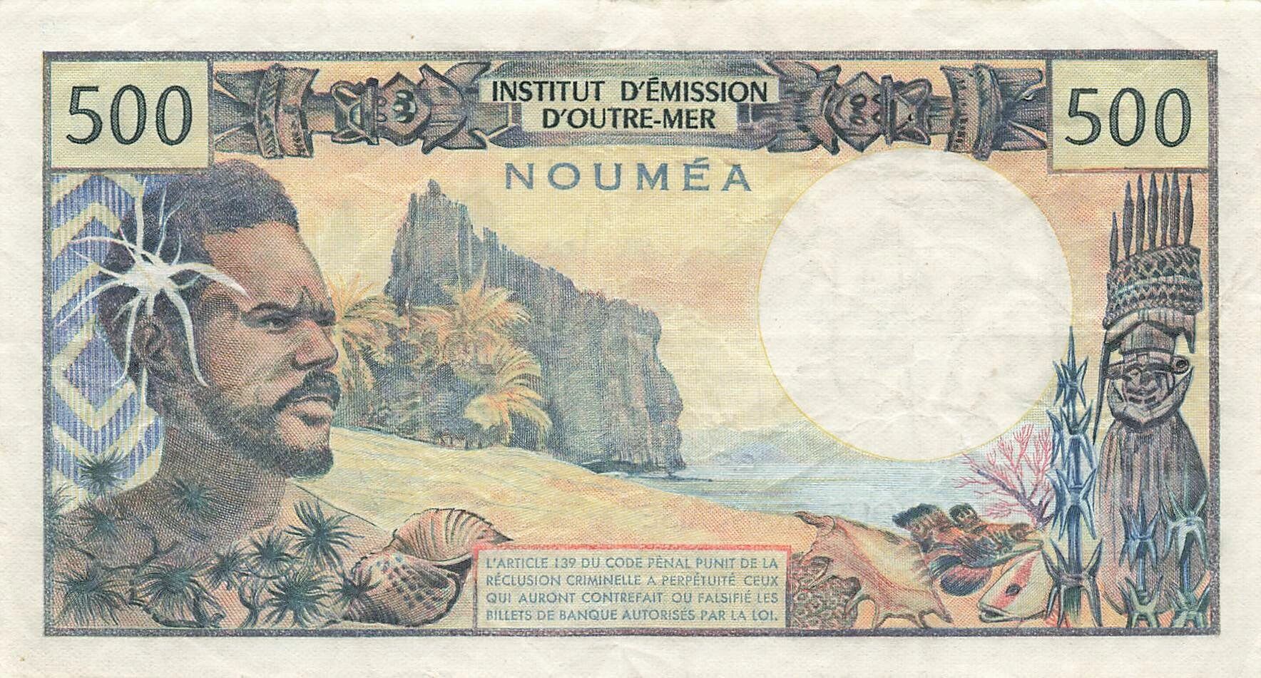Accueil > Billets du Monde > Billets d'Océanie > Nouvelle Calédonie > Nle Calédonie 500 Francs - ND (1969-92) - P.60a
