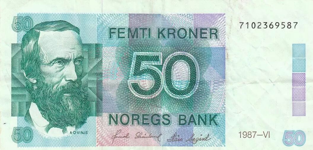 Accueil > Archivage > Norvège 50 Kroner - Aasmund Olavsson Vinje - 1987