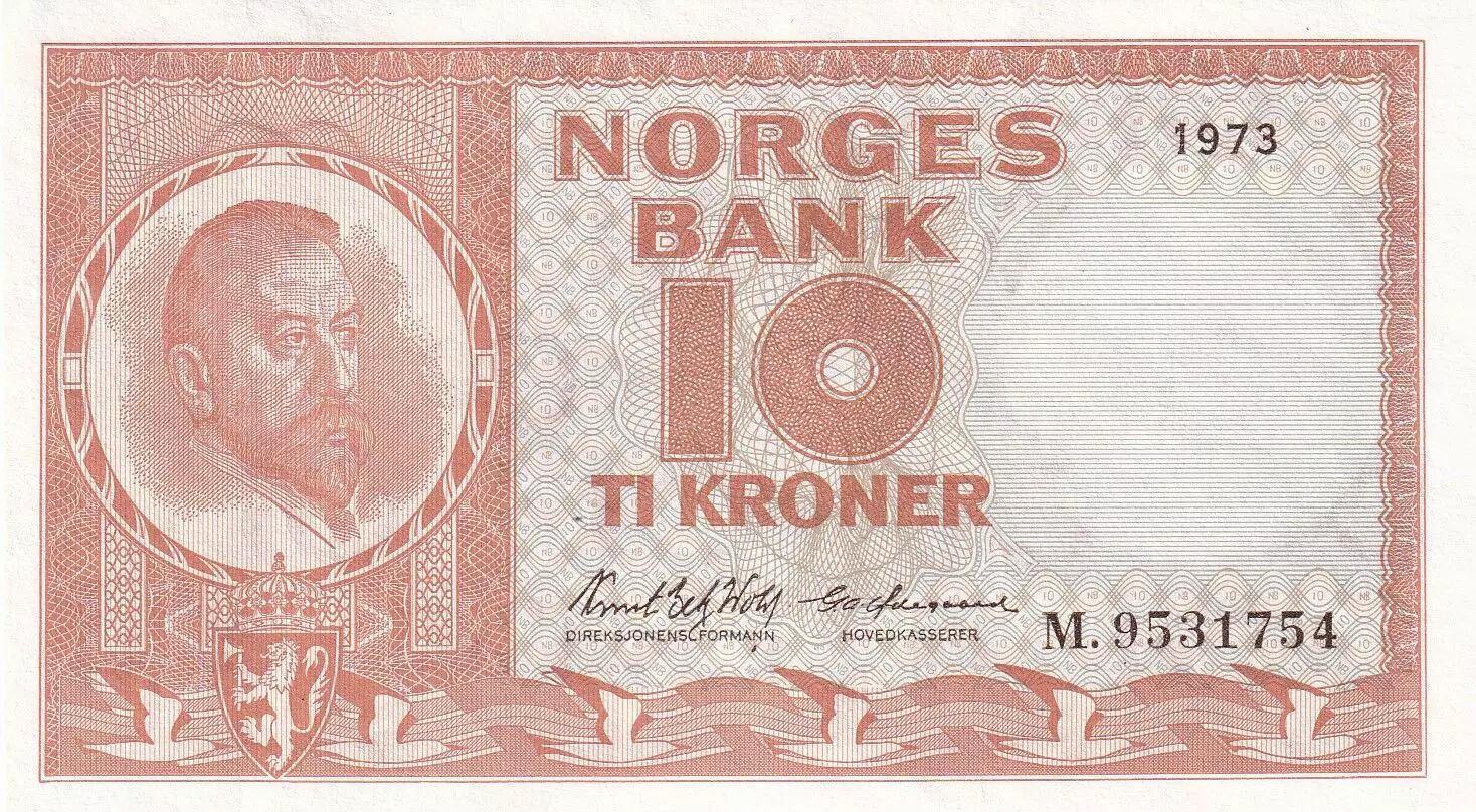 Home > > Norway 10 Kroner - Christian Michelsen - 1973 - Serial M - P.31