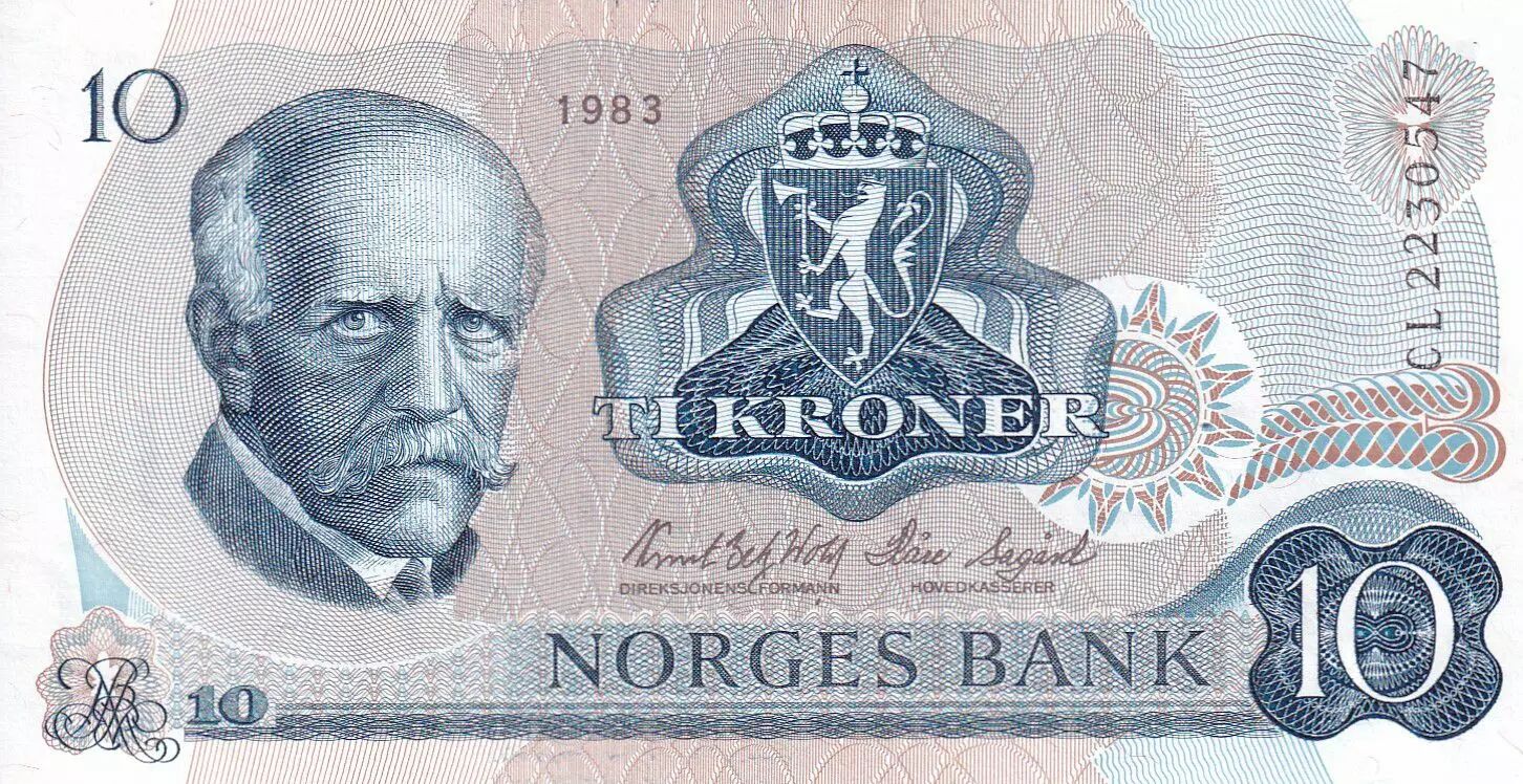 Home > World Banknotes > European Banknotes > Norway > Norway 10 Kroner - Fridtjof Nansen - Fisherman - 1983 - Serial CL -P.37c