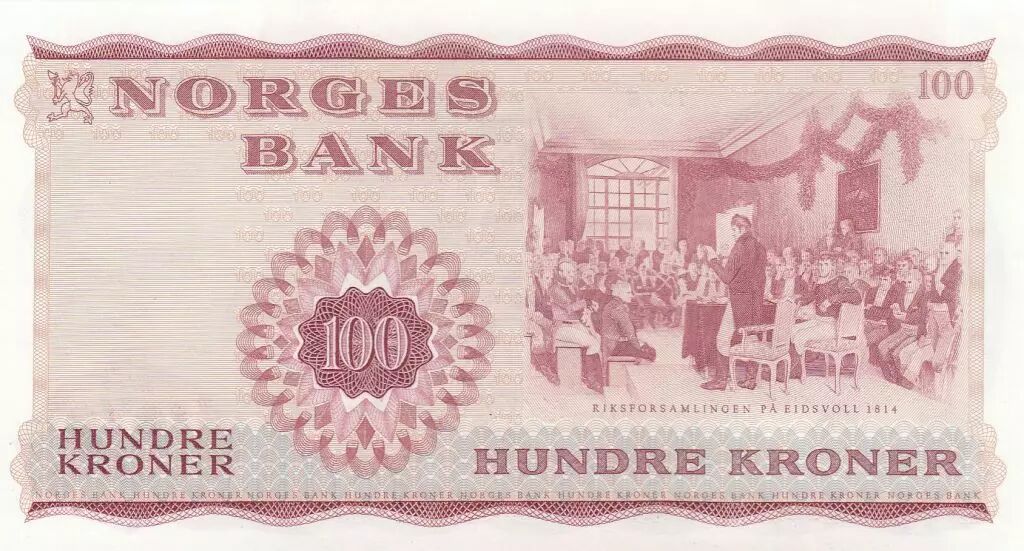 Home > > Norway 100 Kroner 1975 - H. Wergeland, Constitution of 1814