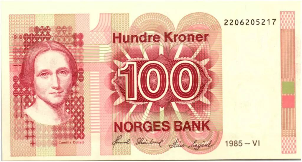 Home > World Banknotes > European Banknotes > Norway > Norway 100 Kroner Cahilla Collett - 1985 - UNC P.43c