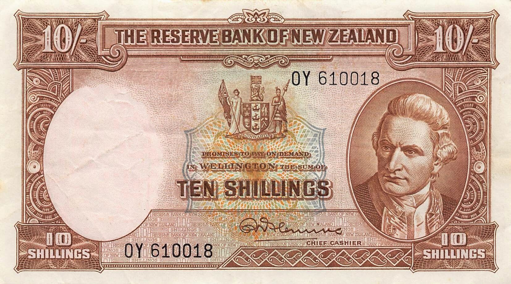 Accueil > Billets du Monde > Billets d'Océanie > Nouvelle Zélande > Nouvelle-Zélande 10 Shillings - James Cook - ND (1956-60) - P.158c