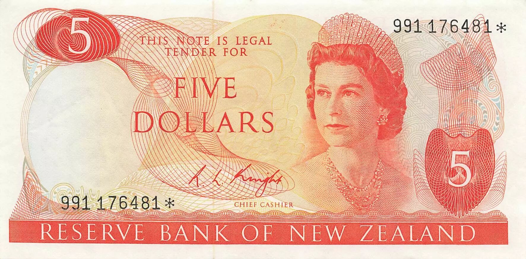 Accueil > Billets du Monde > Billets d'Océanie > Nouvelle Zélande > Nouvelle-Zélande 5 Dollars - Elisabeth II - ND (1975-77) - Remplacement - P.165c