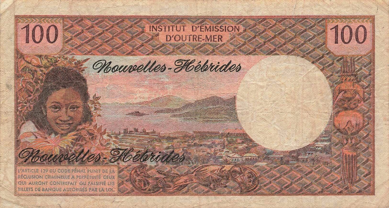 Accueil > Billets du Monde > Billets d'Océanie > Nouvelles Hébrides > Nouvelles Hébrides 100 Francs - ND (1975) - P.18c