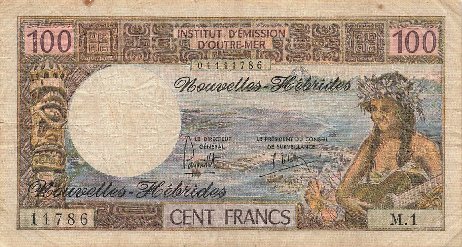 Accueil > Billets du Monde > Billets d'Océanie > Nouvelles Hébrides > Nouvelles Hébrides 100 Francs - ND (1975) - P.18c