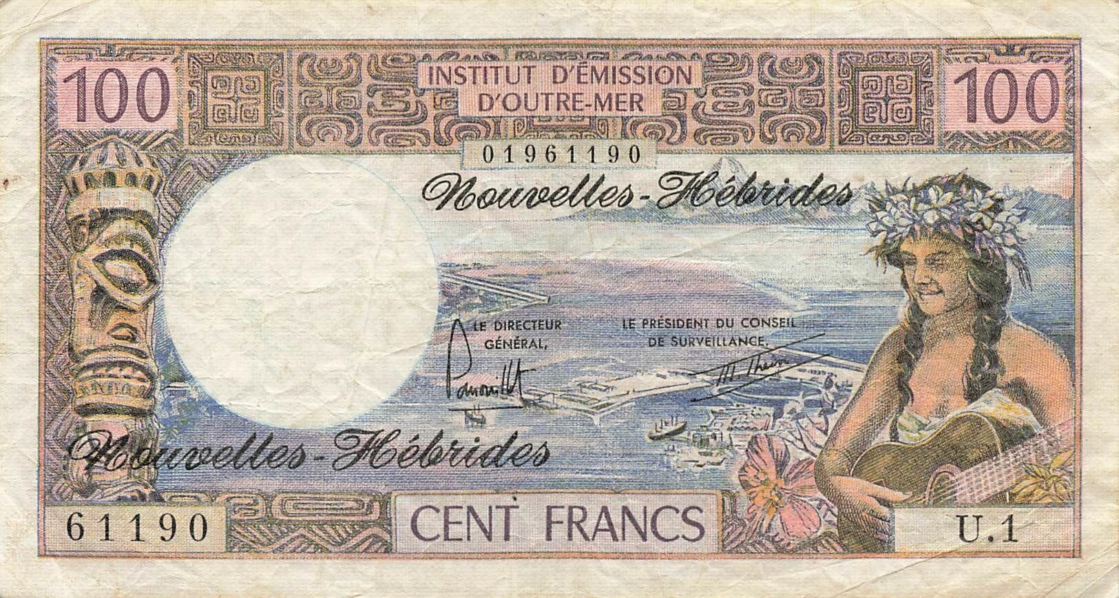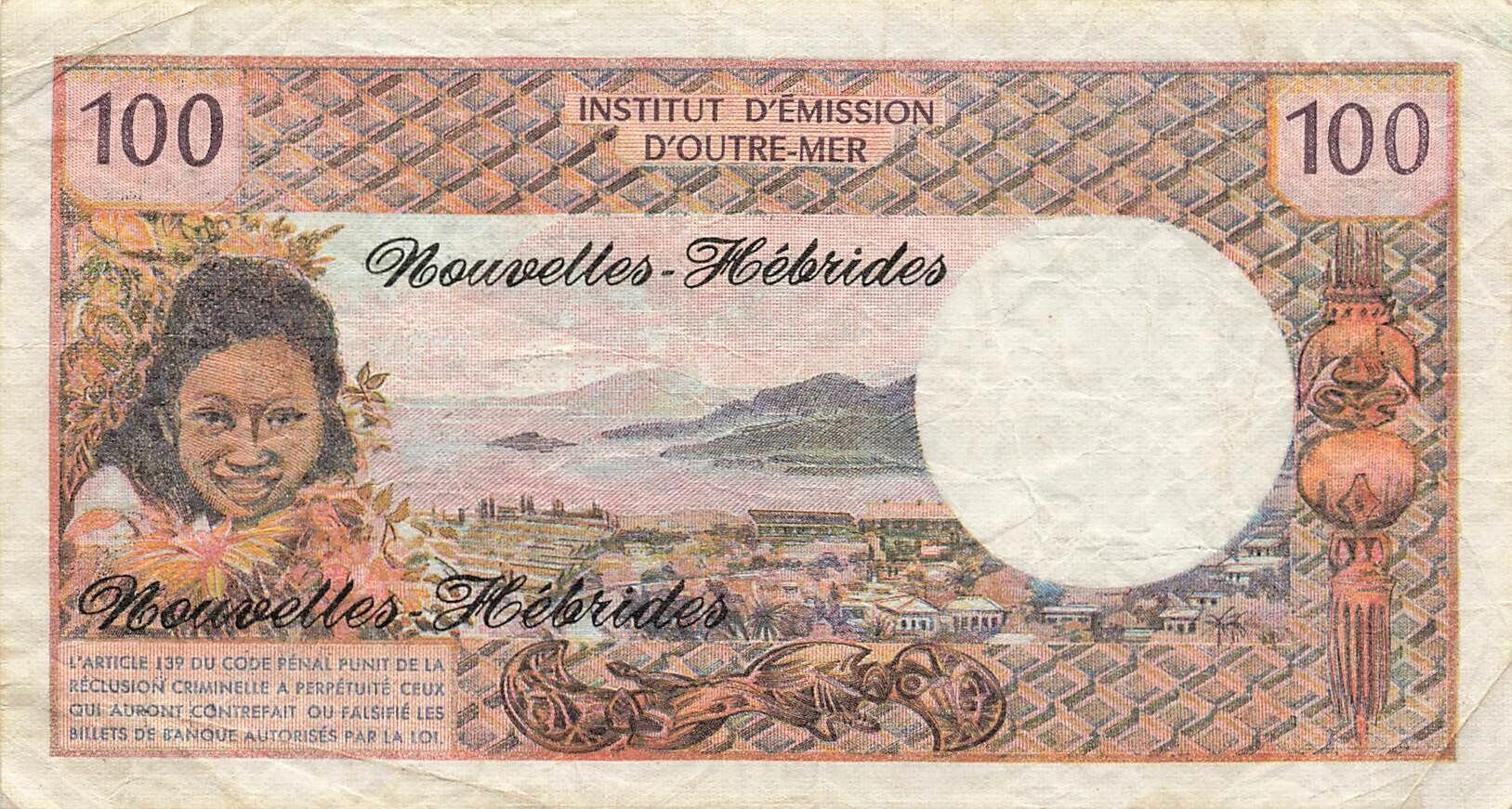 Accueil > Billets du Monde > Billets d'Océanie > Nouvelles Hébrides > Nouvelles Hébrides 100 Francs - ND (1977) - P.18d
