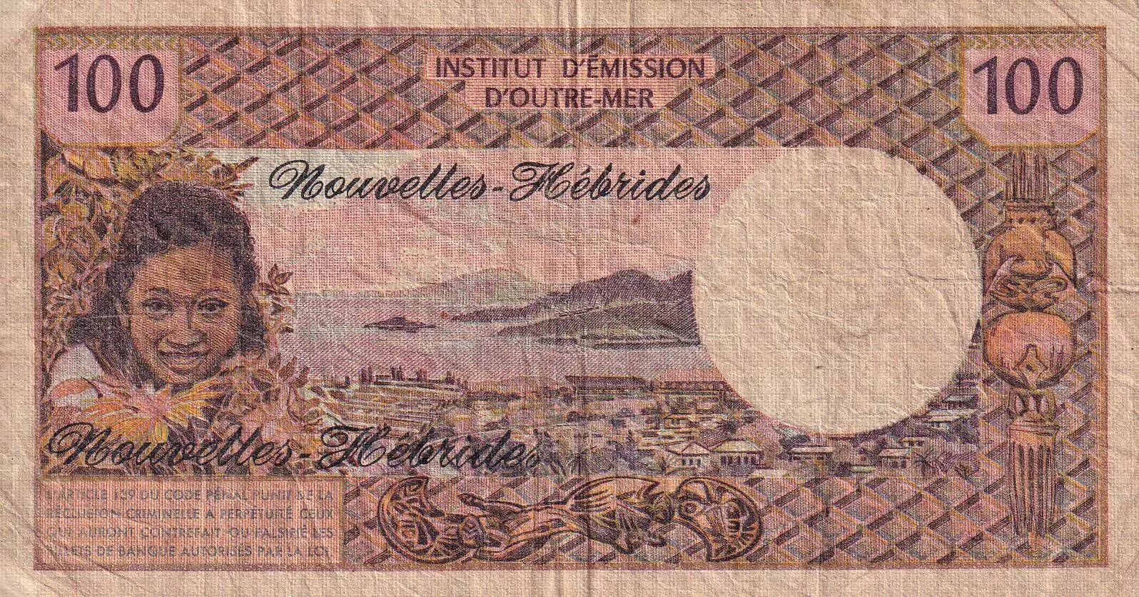 Accueil > Archivage > Nouvelles Hébrides 100 Francs - Tahitienne - 1970 - Série G.1 - PTB - P.18a