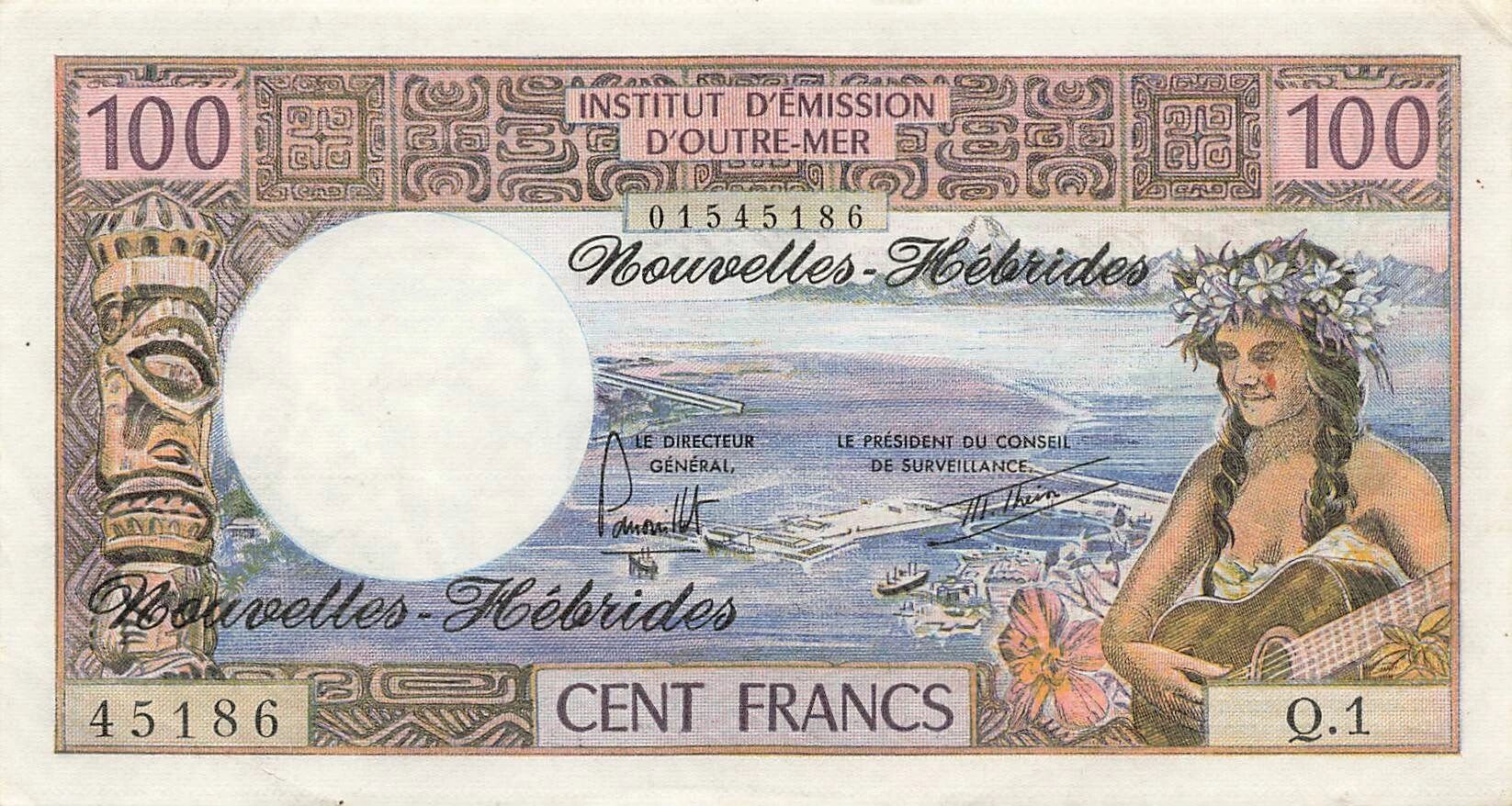 Billet Nouvelles Hébrides 100 Francs - Tahitienne - ND (1977) - P.18d