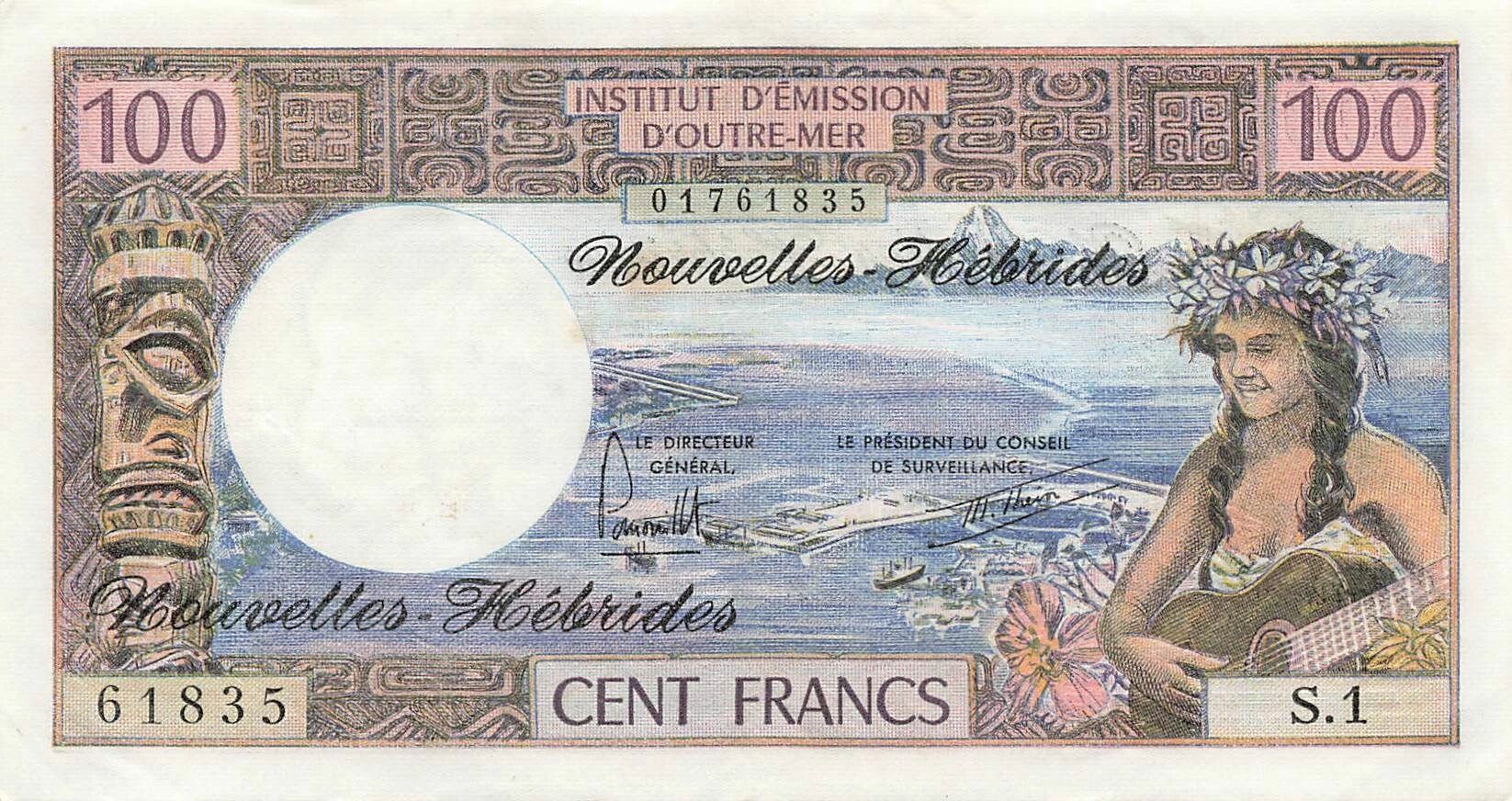 Billet Nouvelles Hébrides 100 Francs - Tahitienne - ND (1977) - P.18d