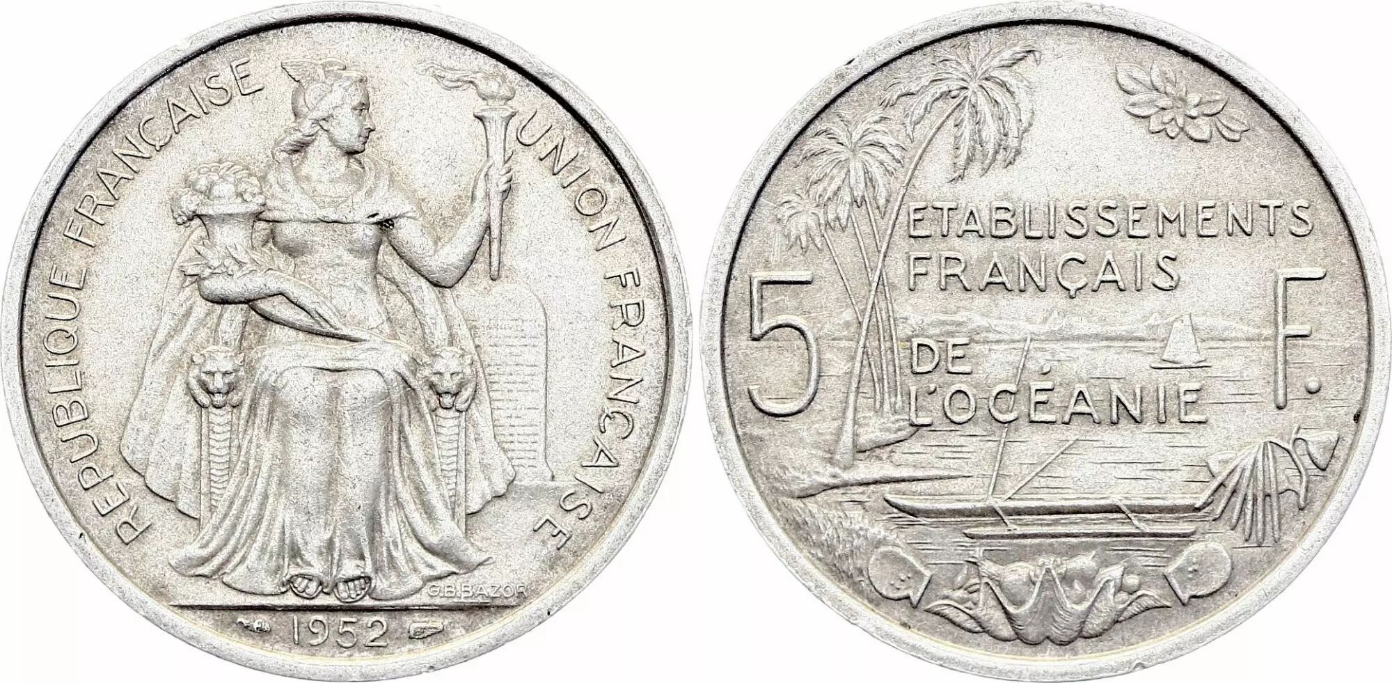 Accueil > Archivage > archivage-Monnaies du monde > Océanie Française 5 Francs - Etablissement Français de l' Océanie - 1952