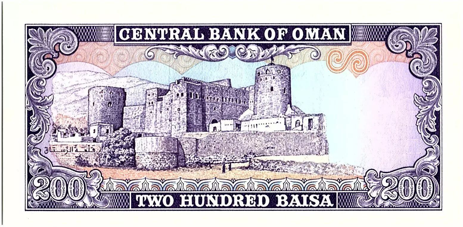 Billet Oman 200 Baisa - Armoiries - Forteresse de Rustaq - 1985 - P.14